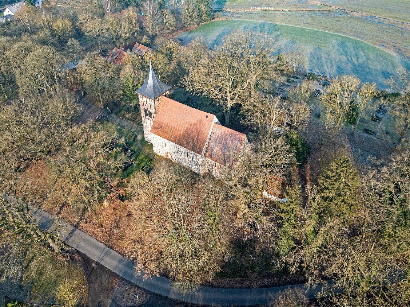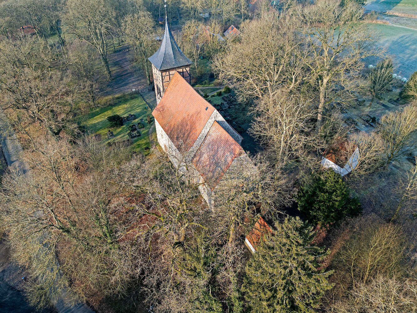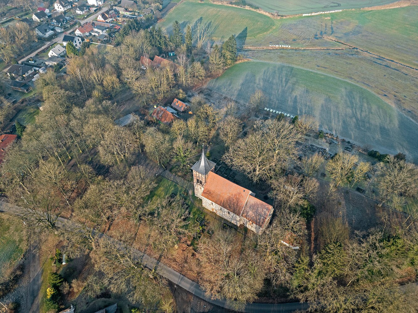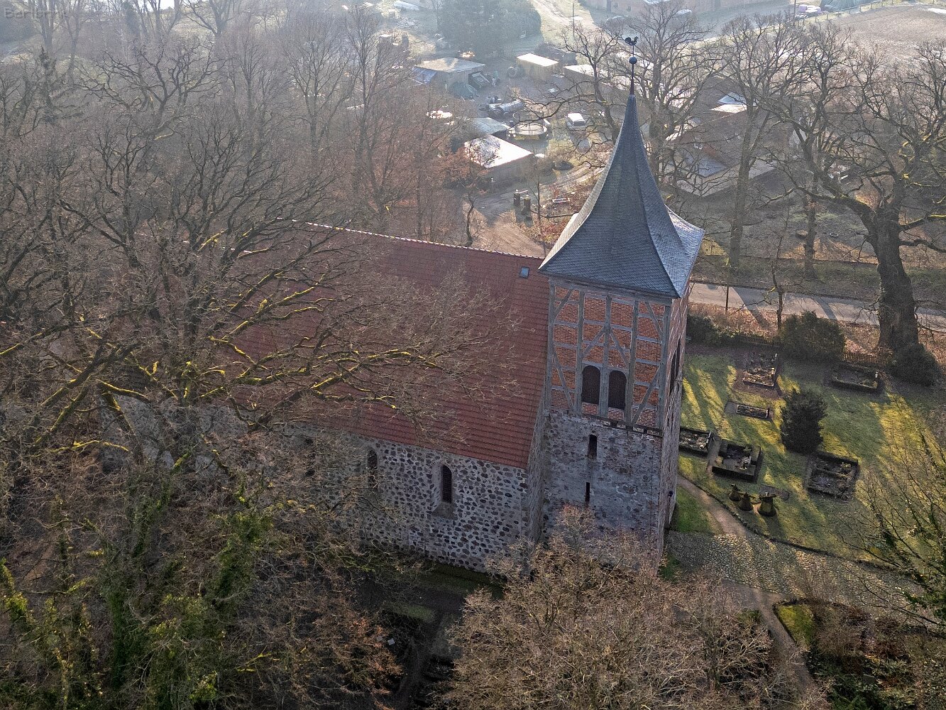 Drohnenaufnahmen der Feldsteinkirche in Kölzow.