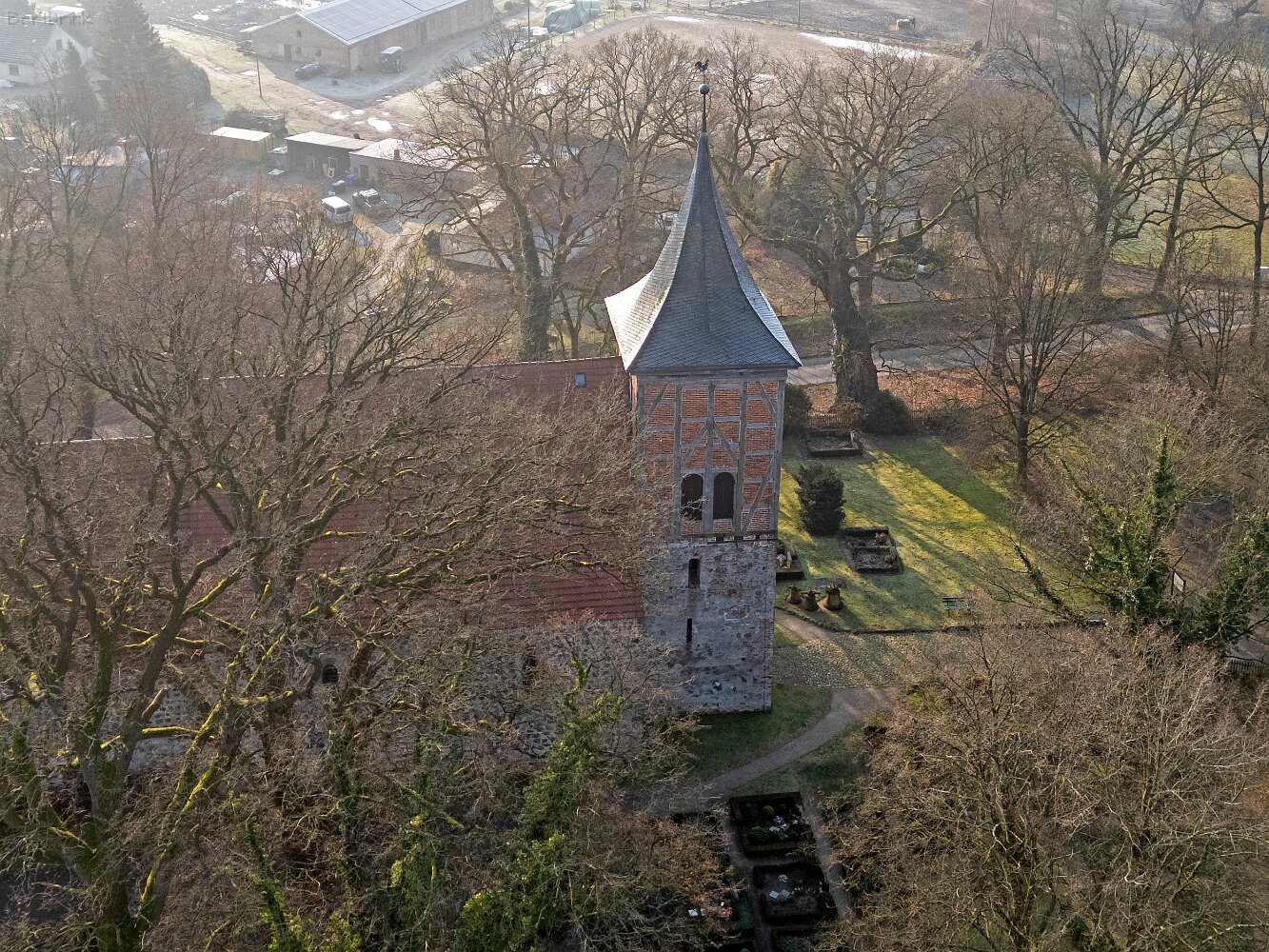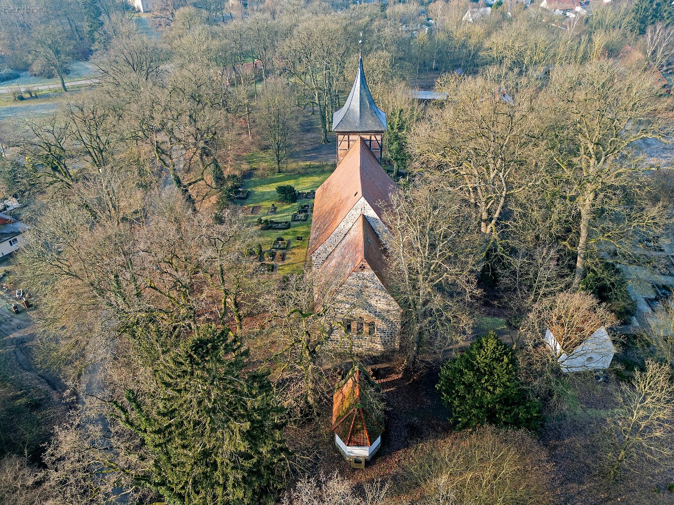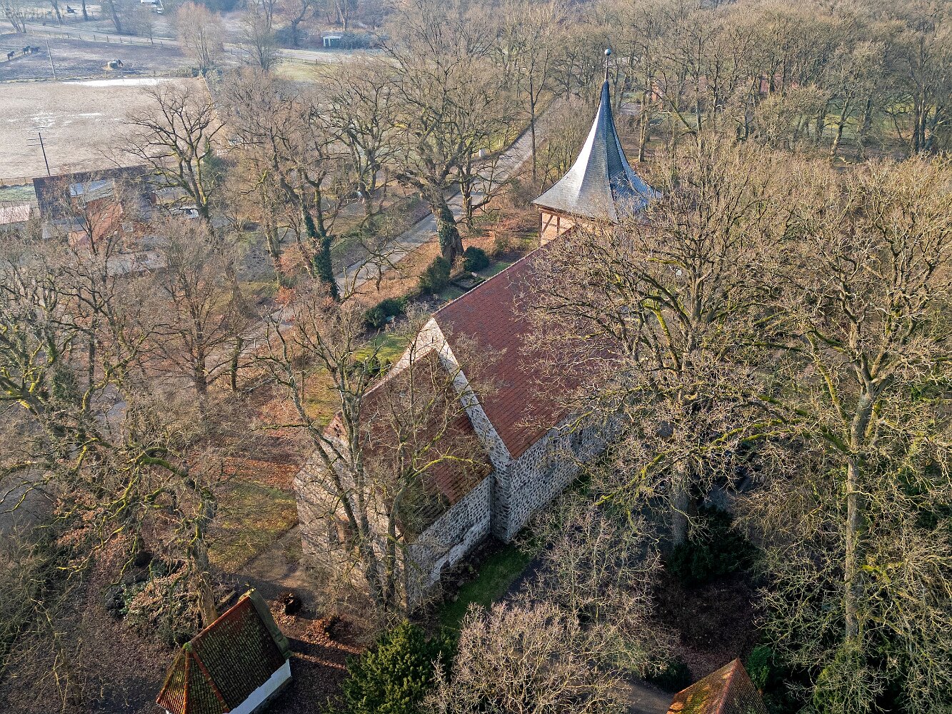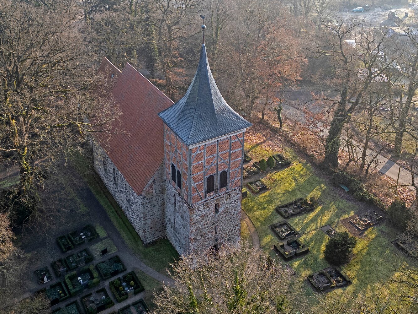 Drohnenaufnahmen der Feldsteinkirche in Kölzow.