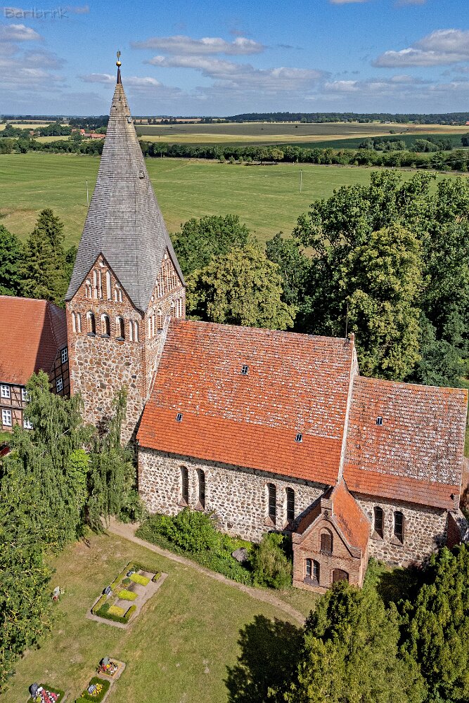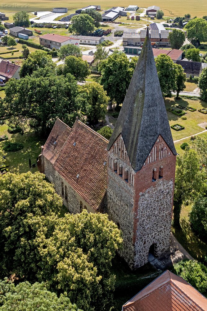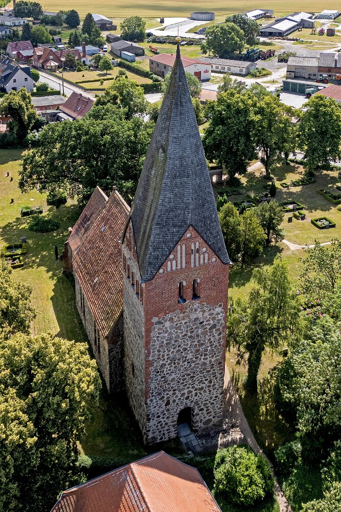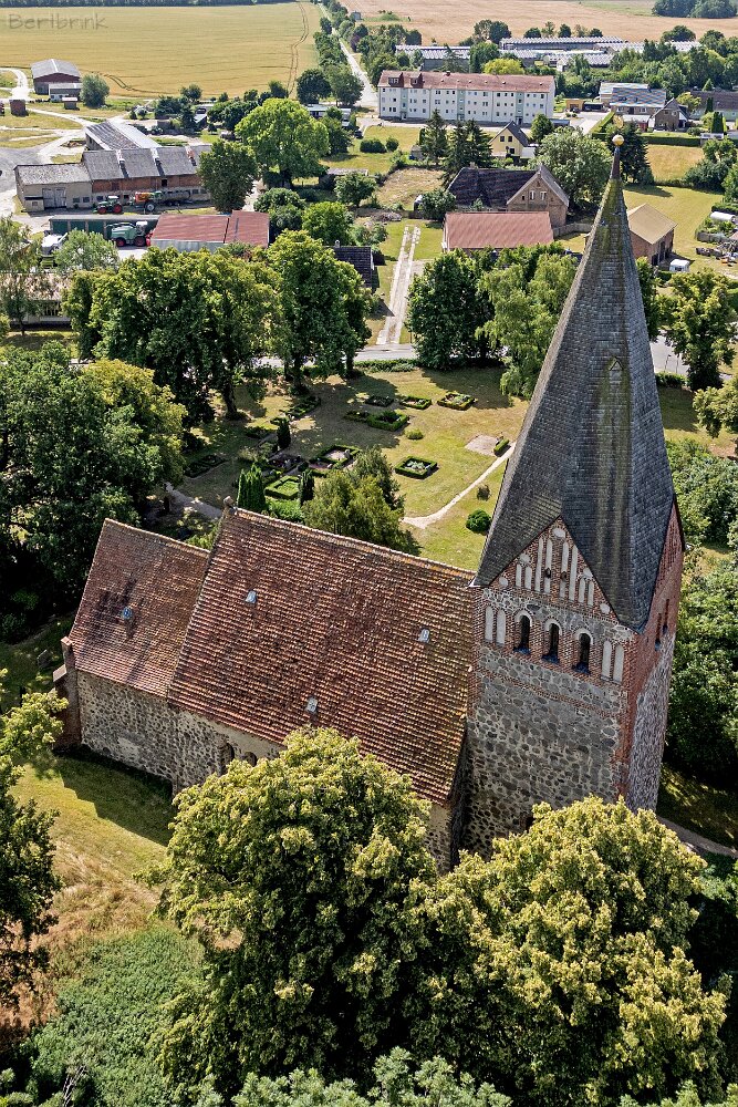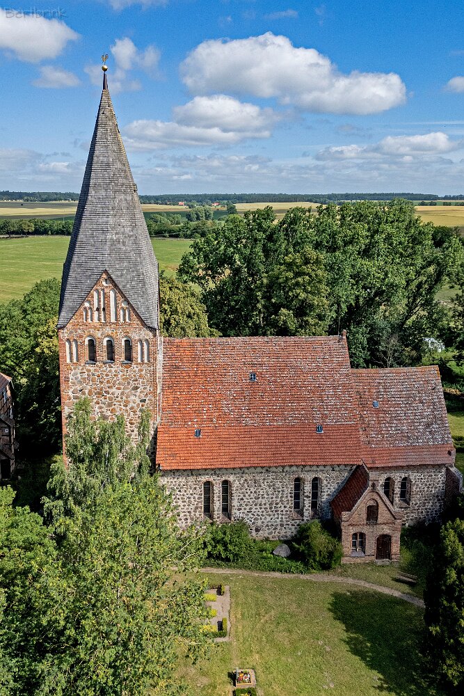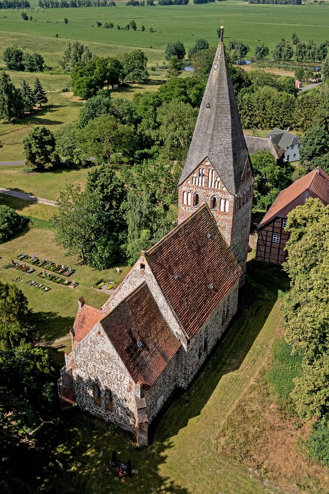 Die Feldsteinkirche Levin auf Drohnenfotos.