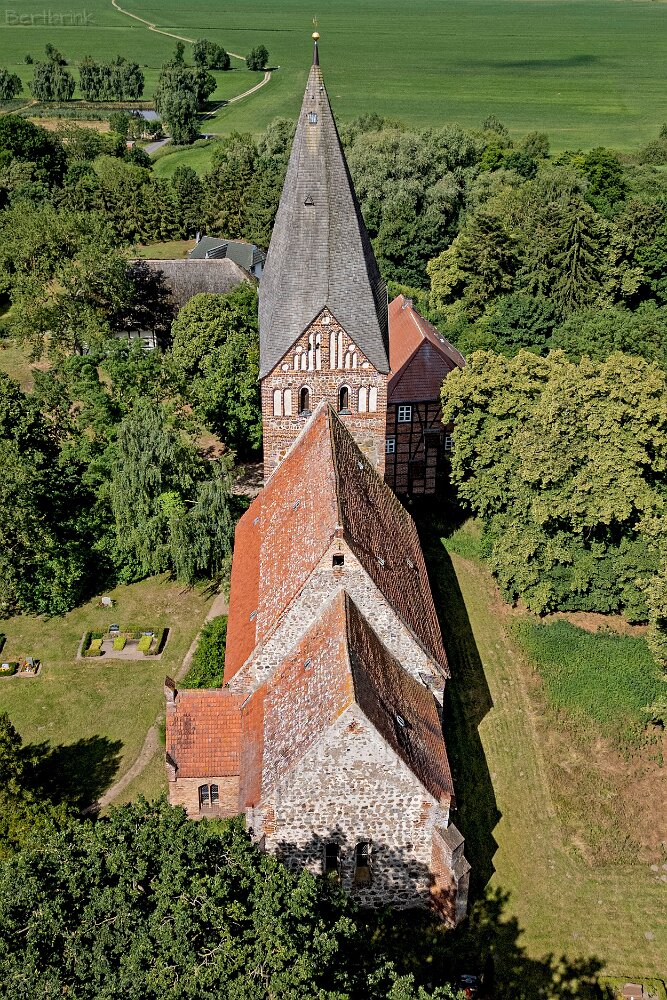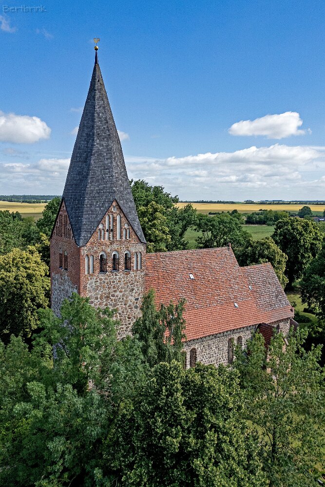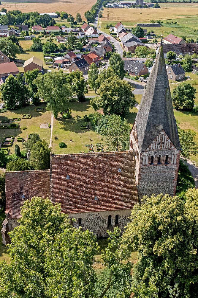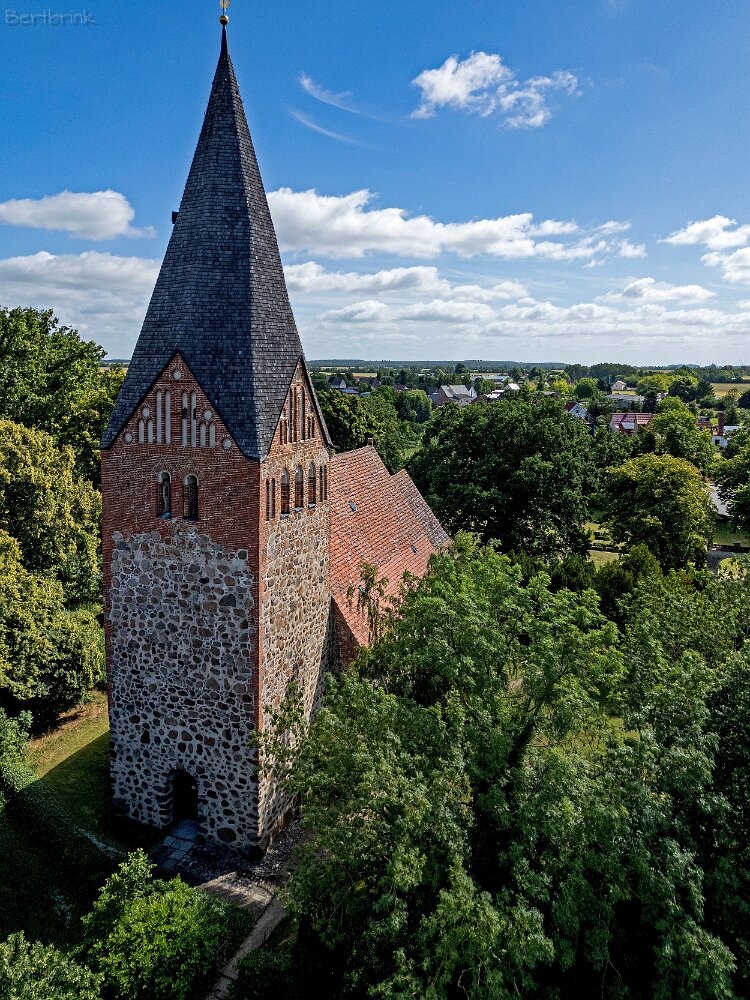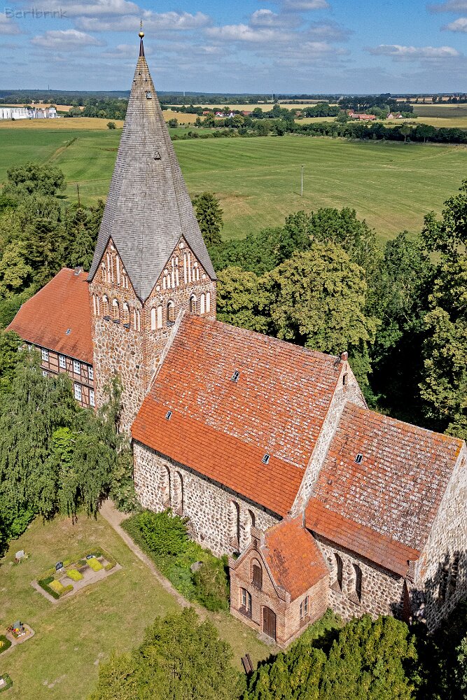 Die Feldsteinkirche Levin auf Drohnenfotos.