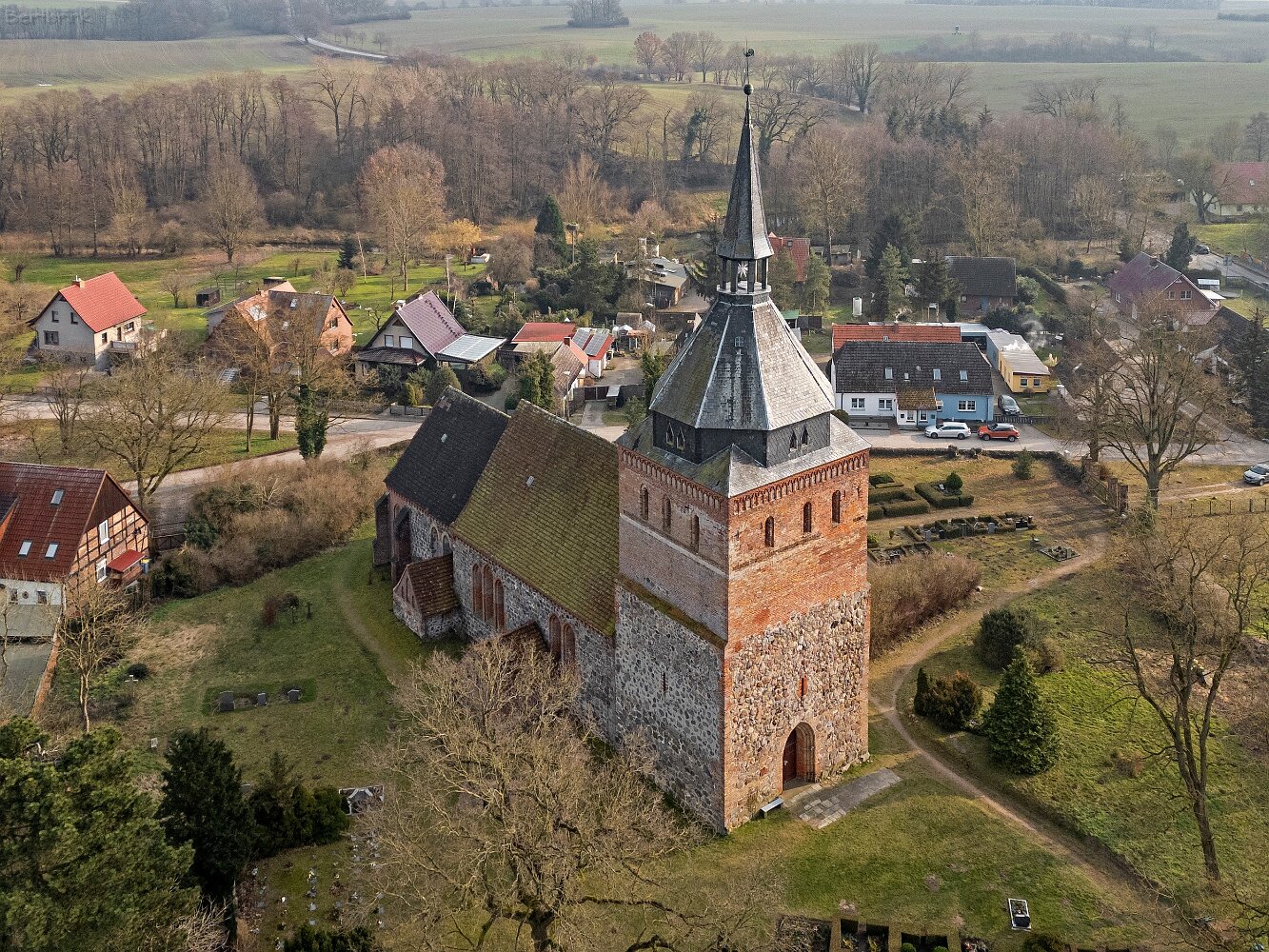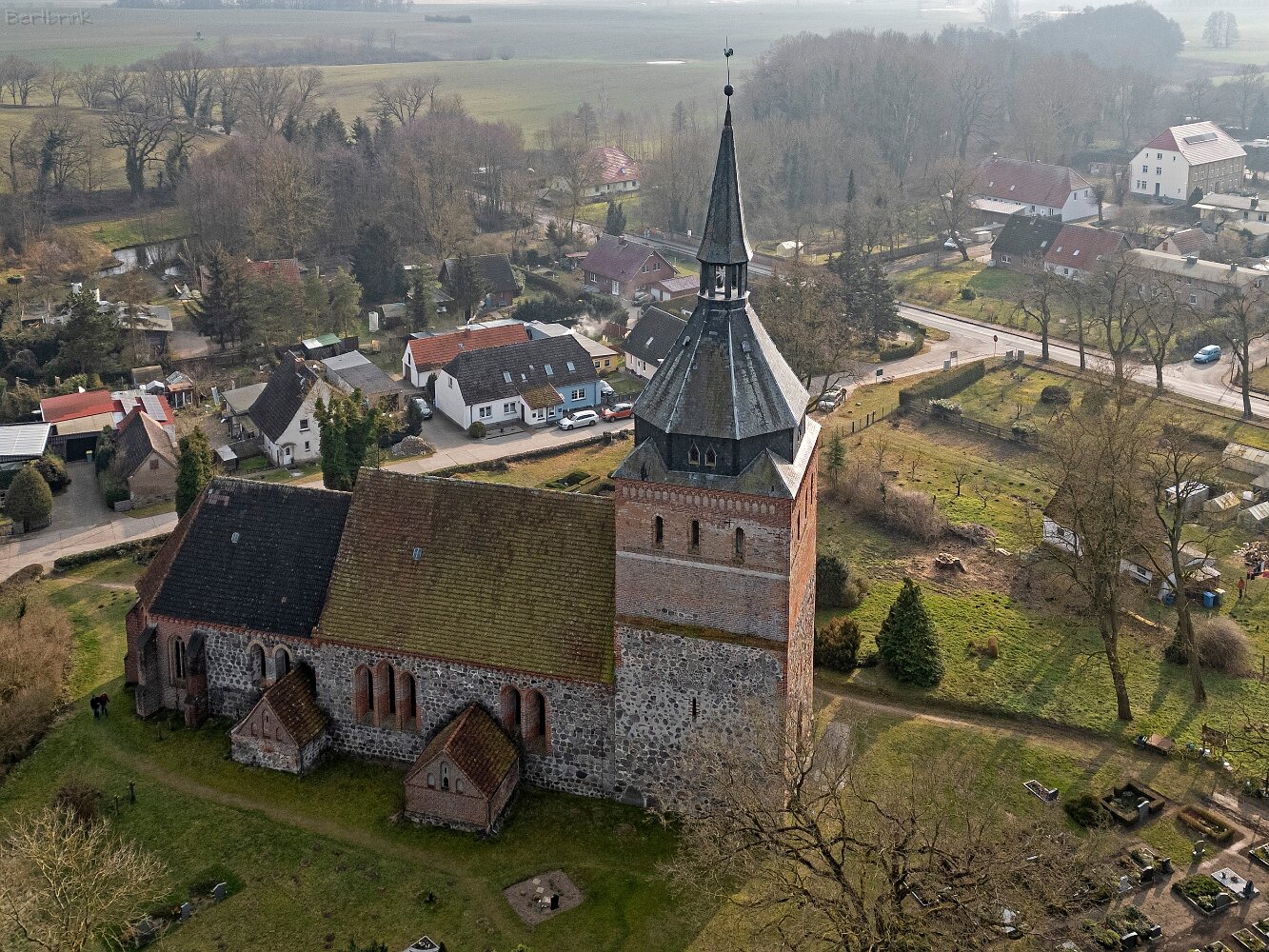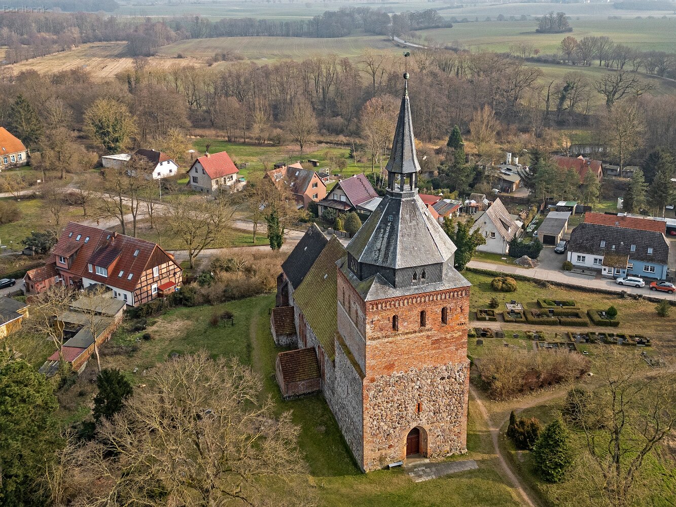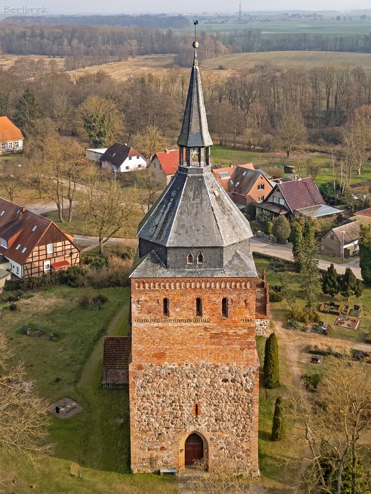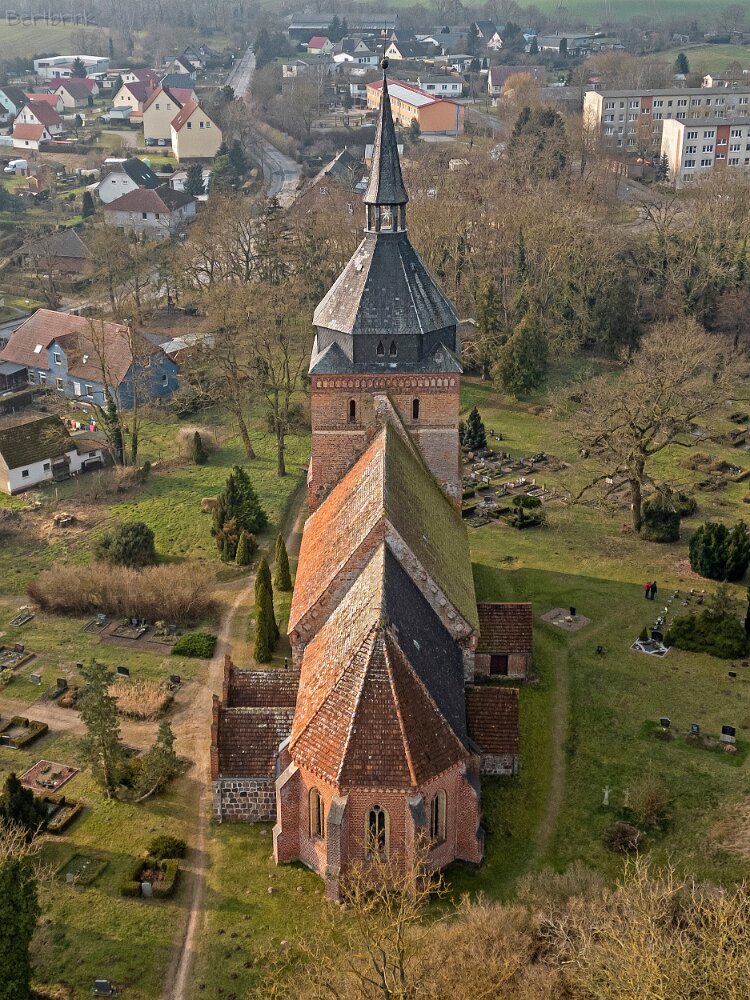 Drohnenaufnahmen der Feldsteinkirche in Lüssow