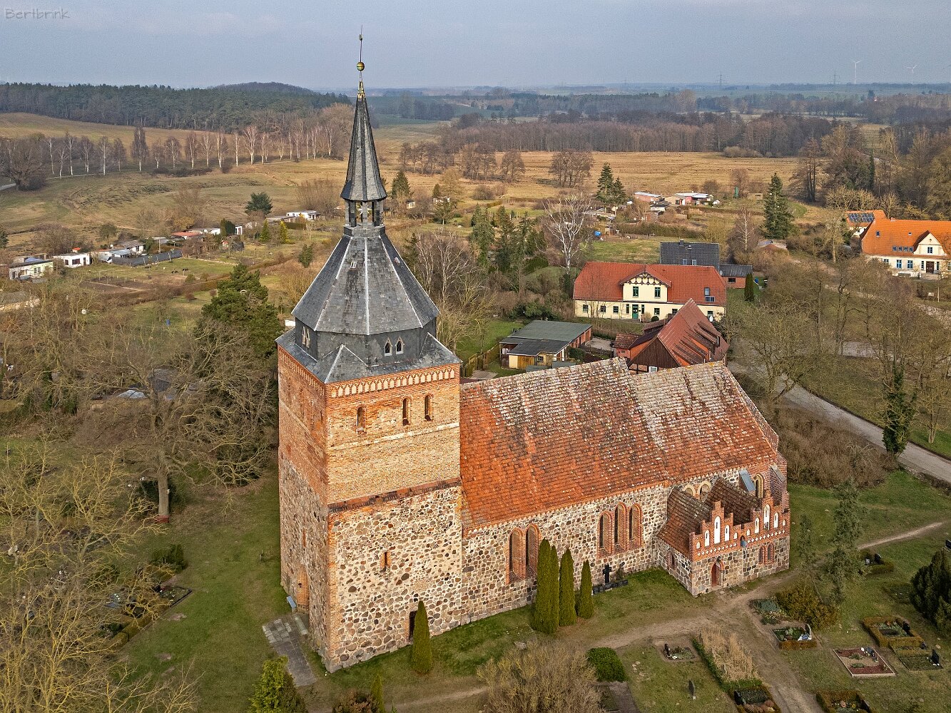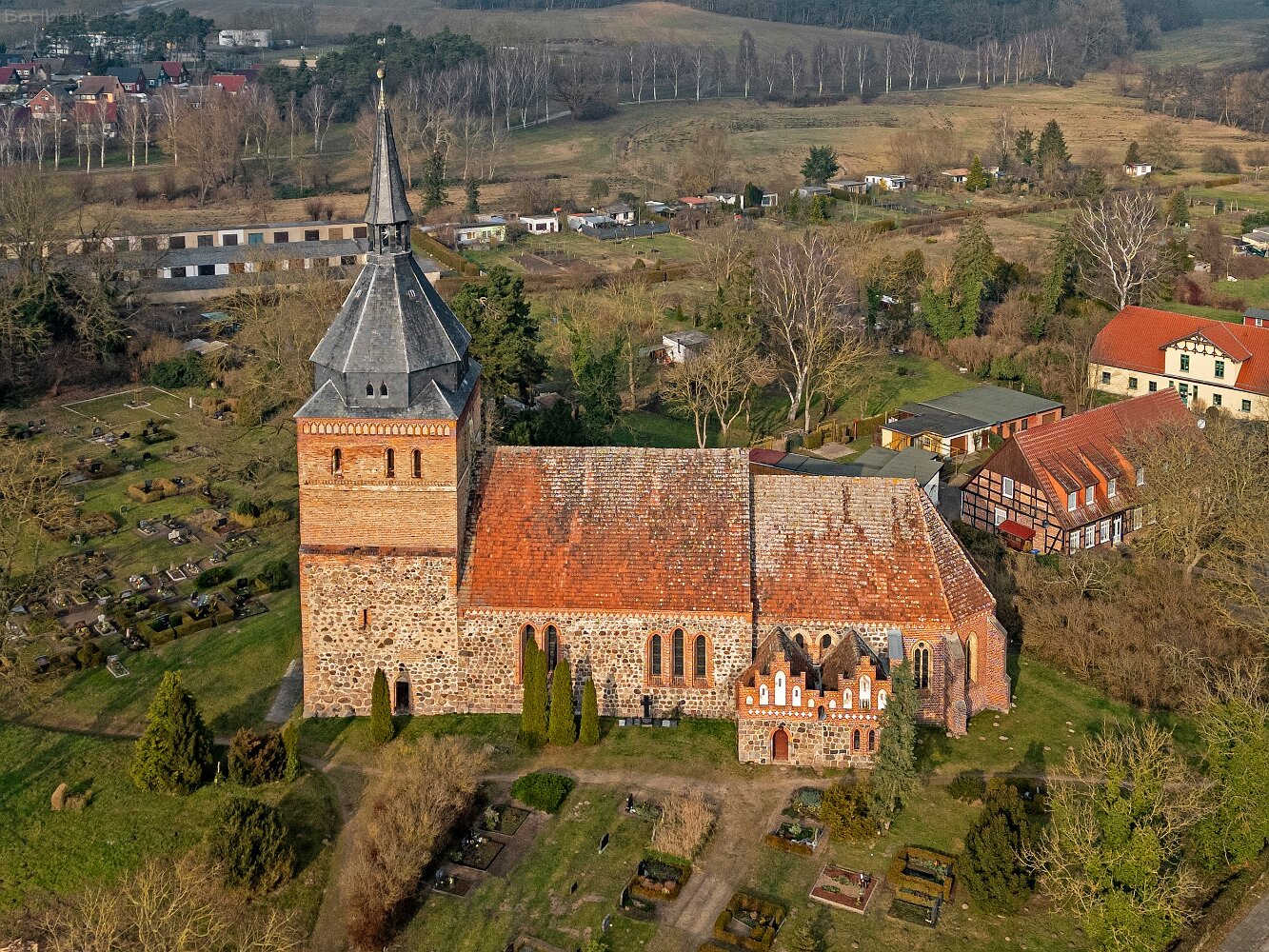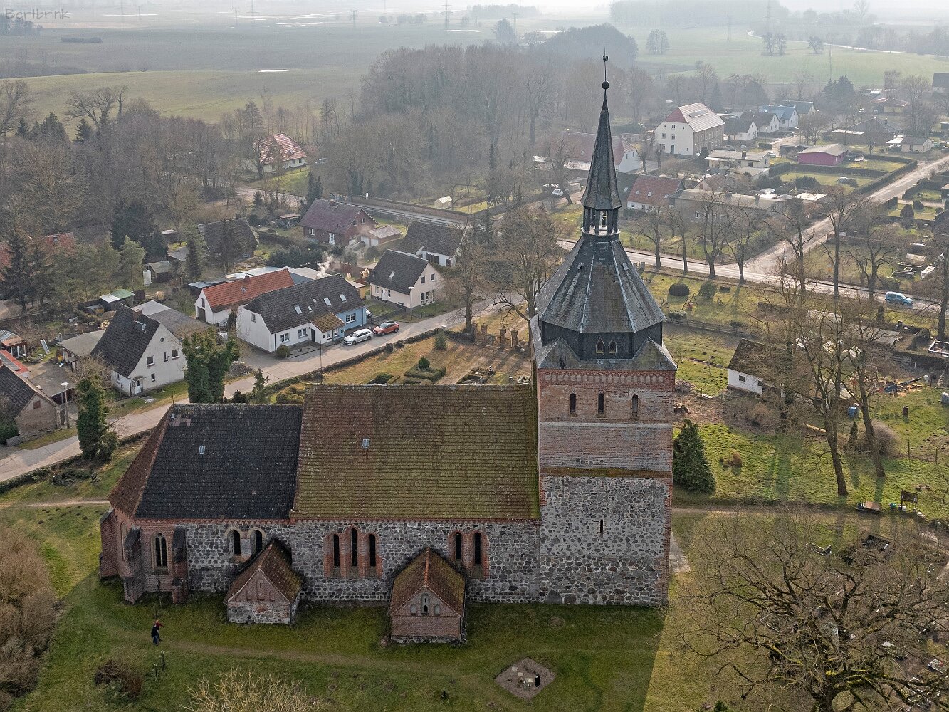 Drohnenaufnahmen der Feldsteinkirche in Lüssow