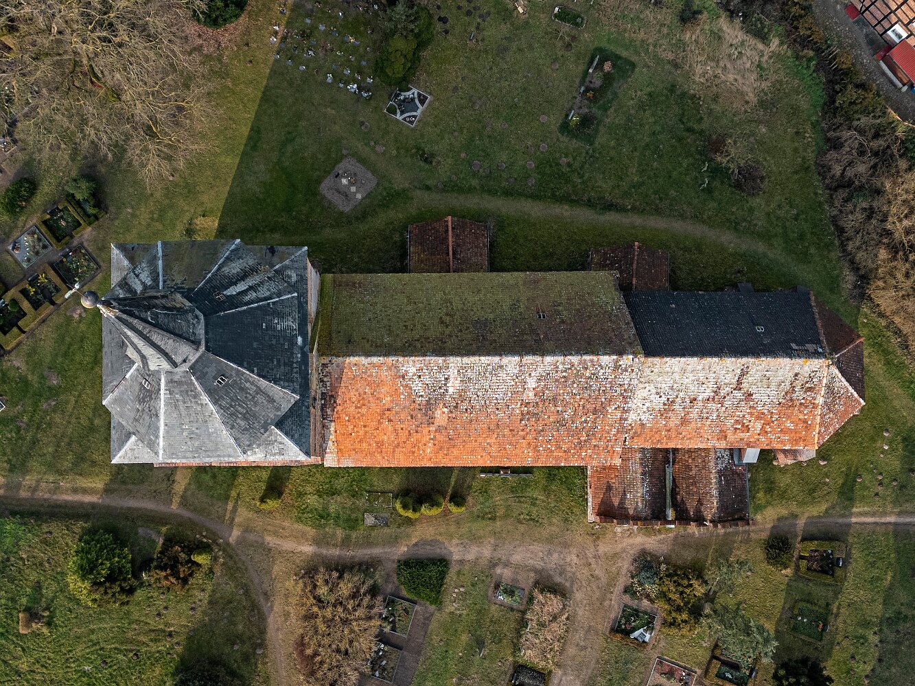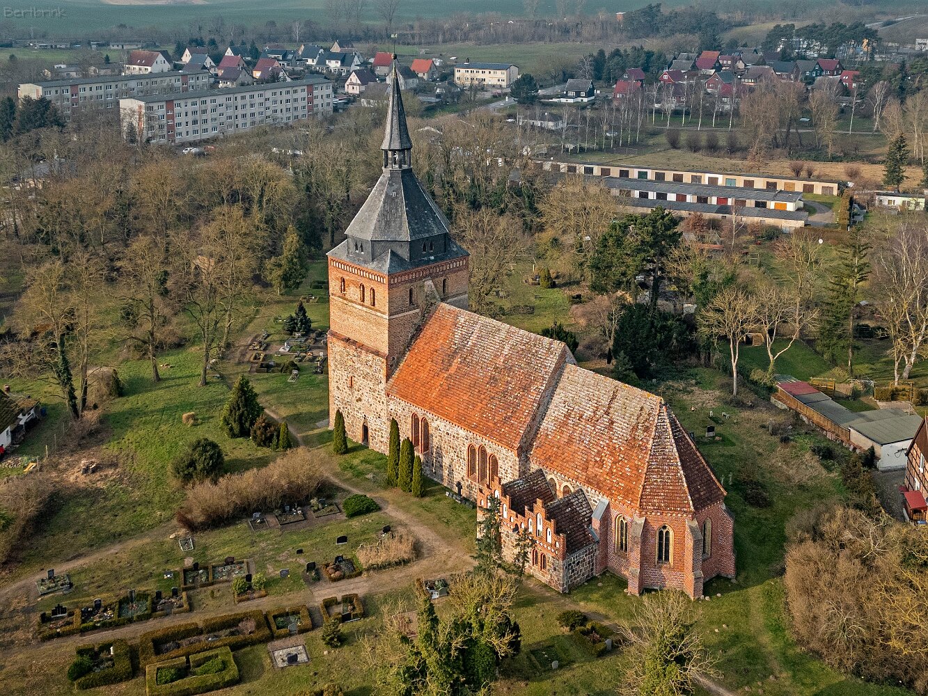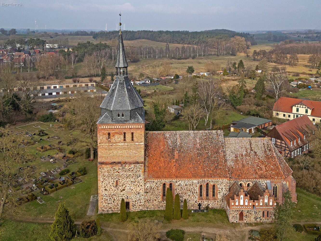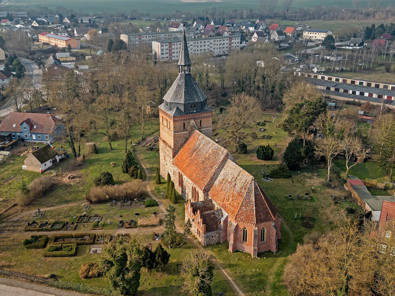 Drohnenaufnahmen der Feldsteinkirche in Lüssow