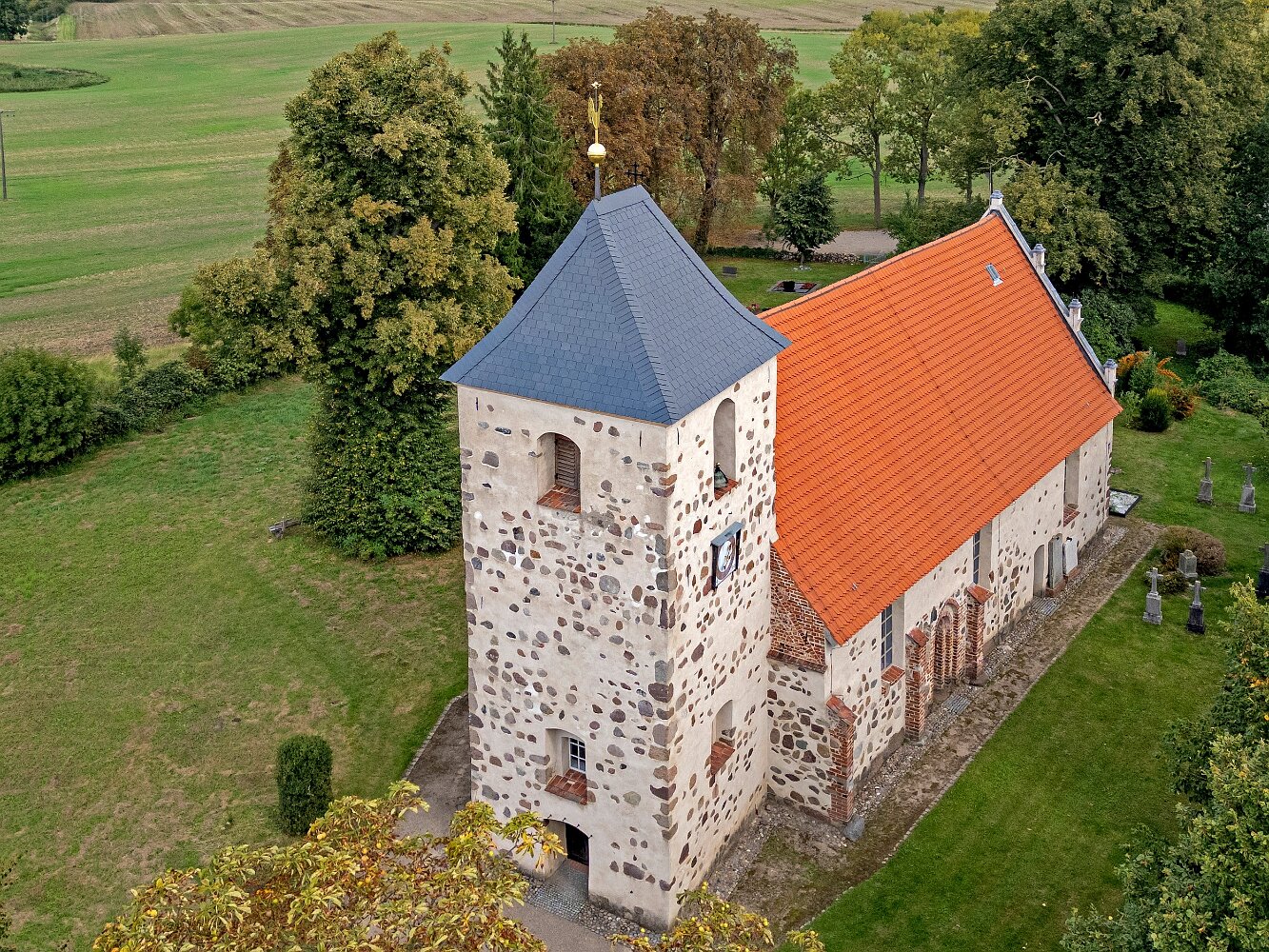 Drohnenaufnahmen der Fedsteinkirche in Rambow