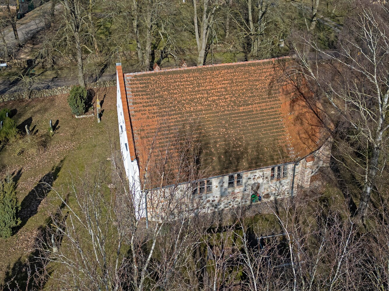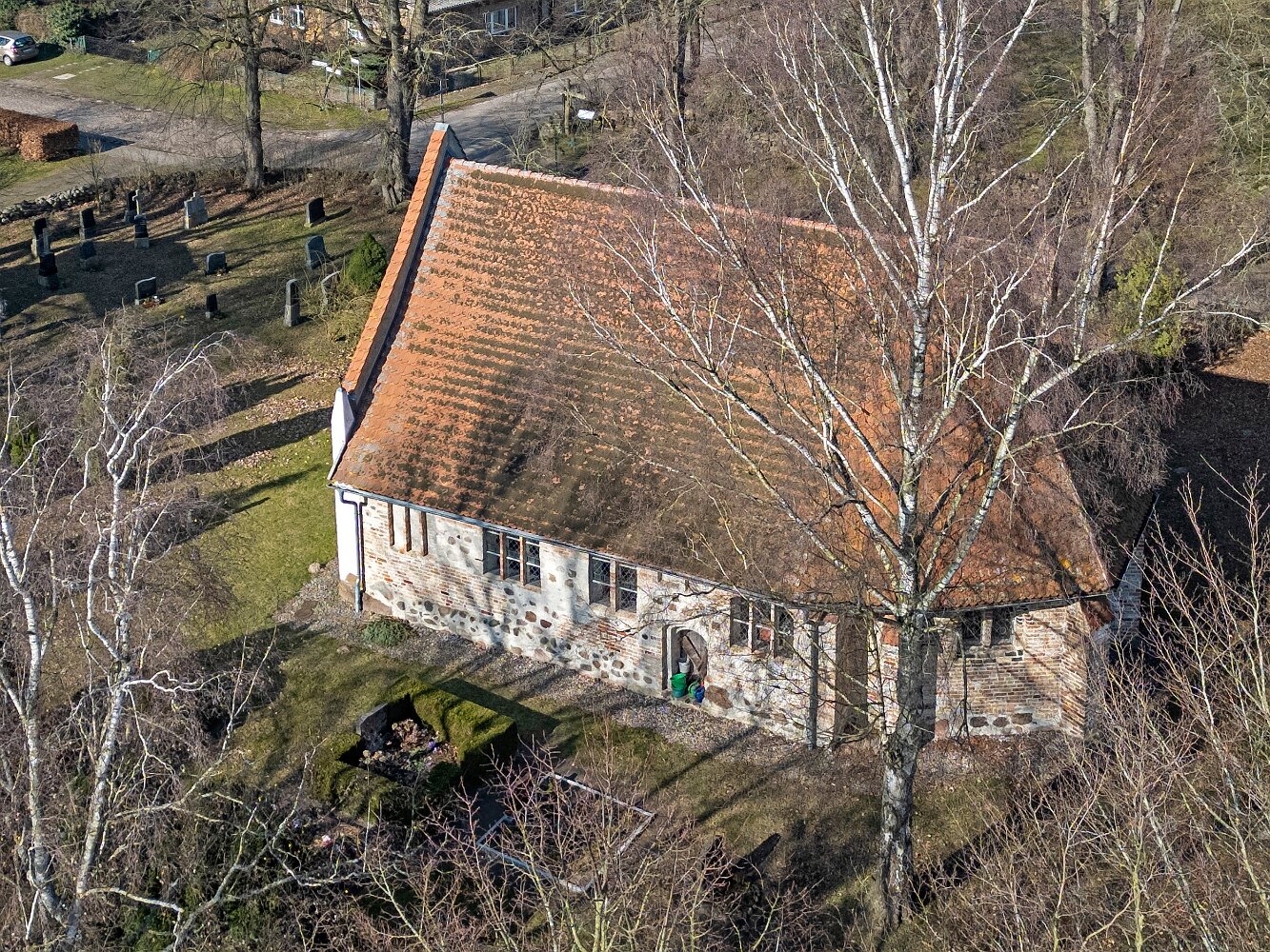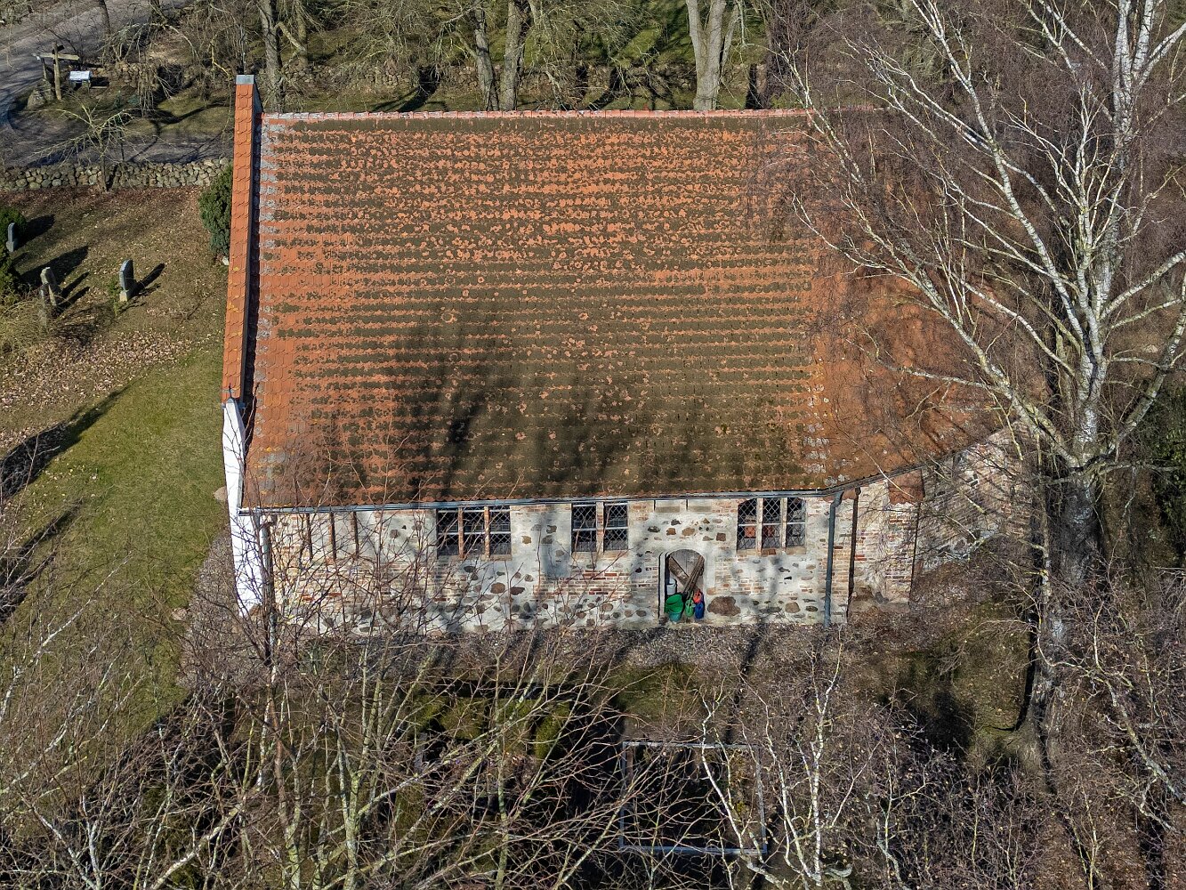 Drohnenaufnahmen der Feldsteinkirche Rostocker Wulfshagen