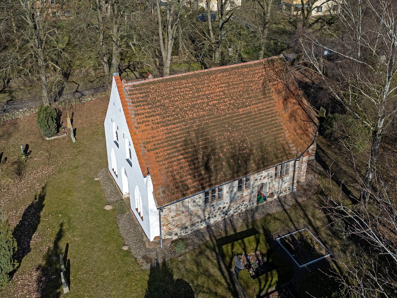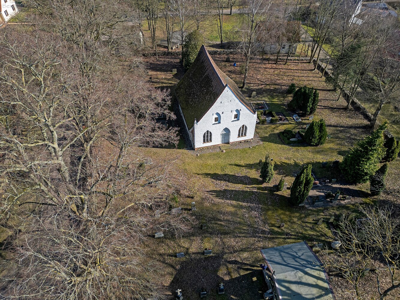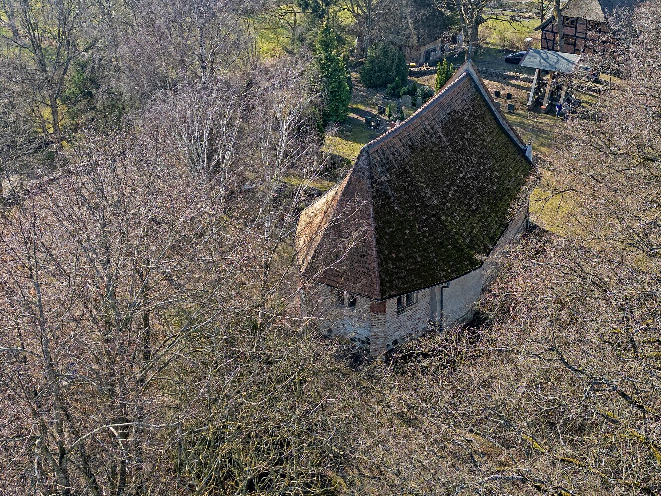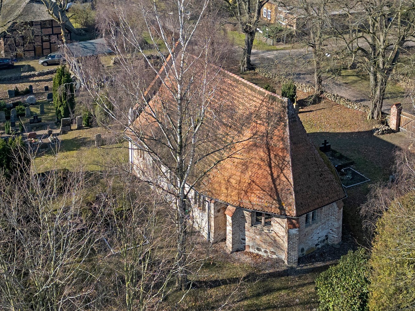 Drohnenaufnahmen der Feldsteinkirche Rostocker Wulfshagen