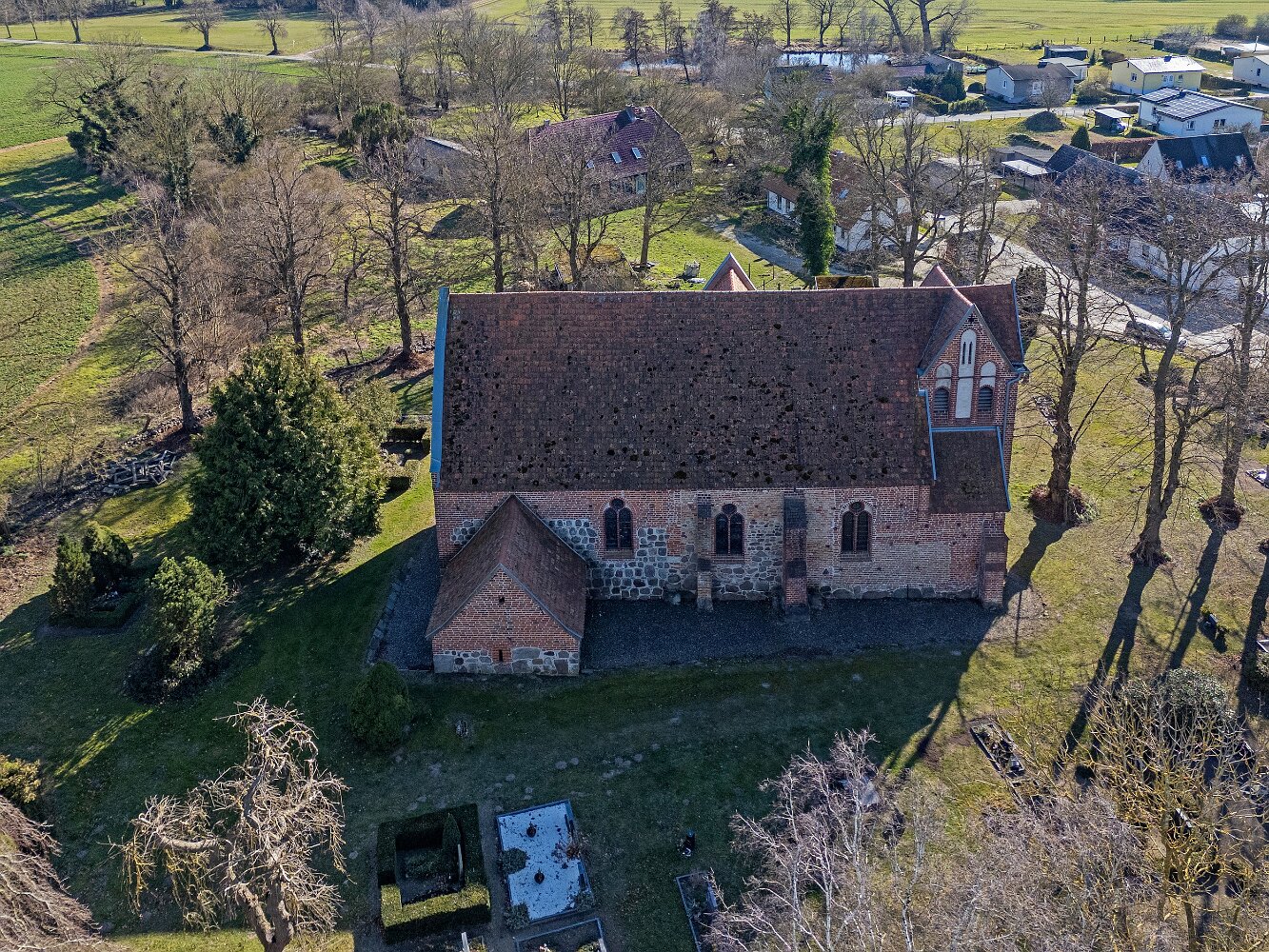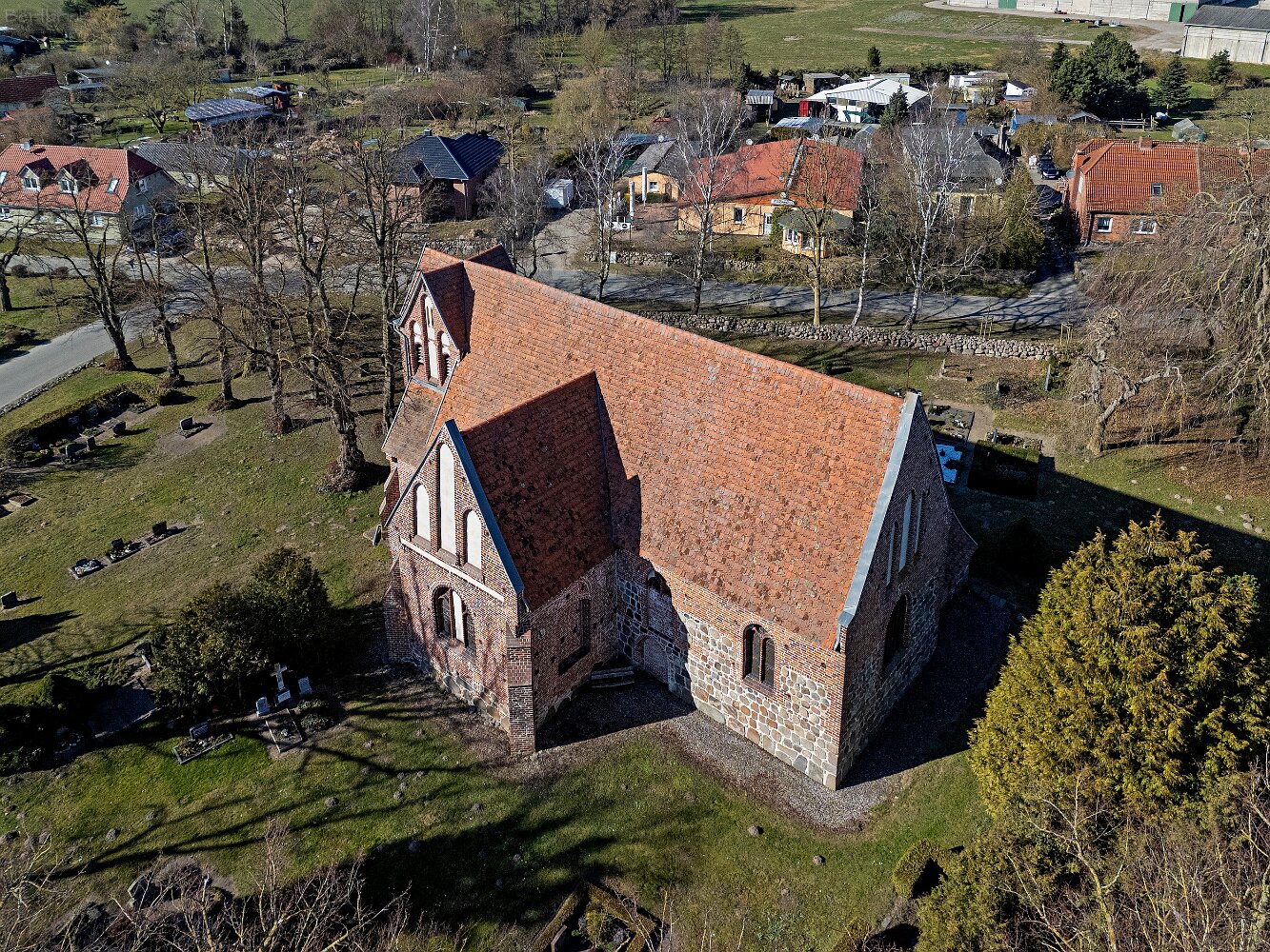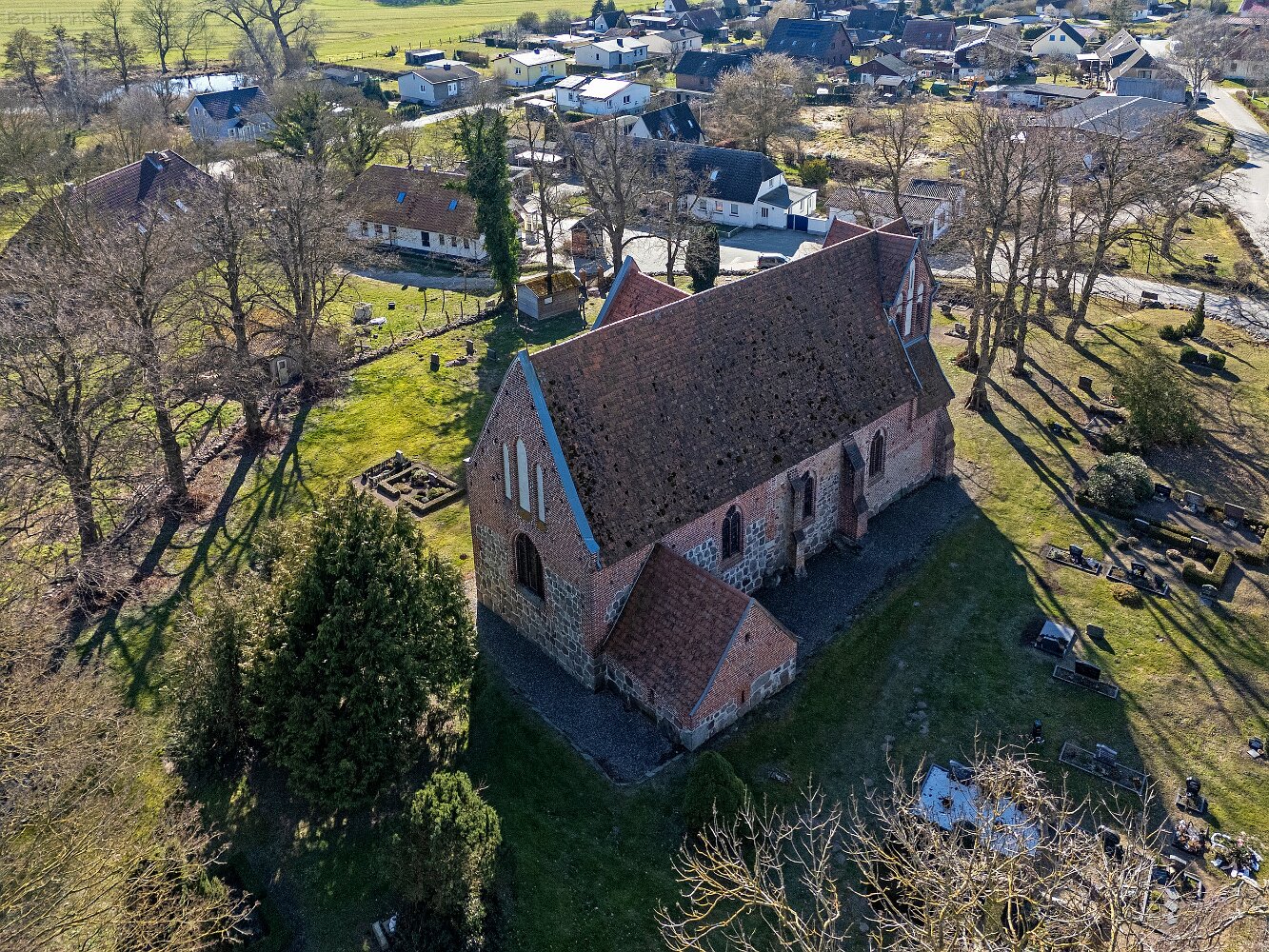 Drohnenaufnahmen der Feldsteinkirche in Russow