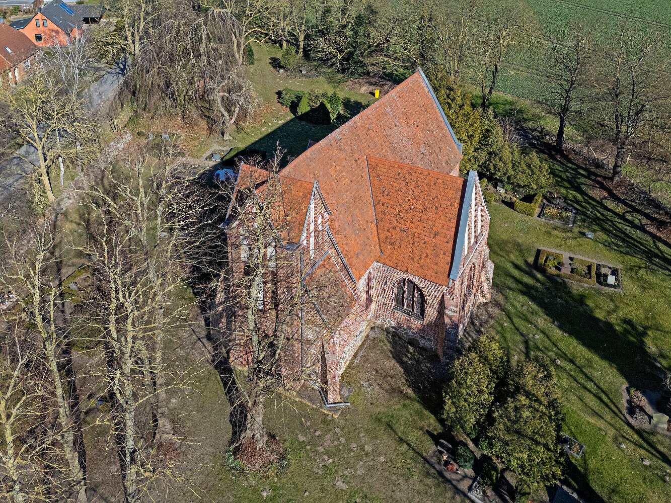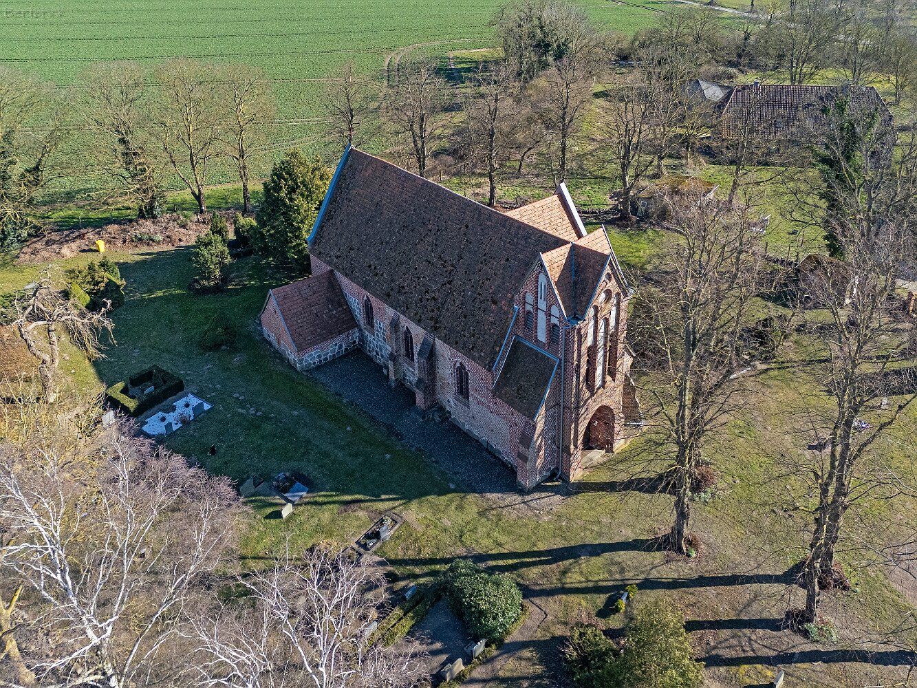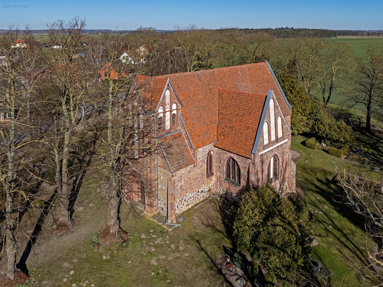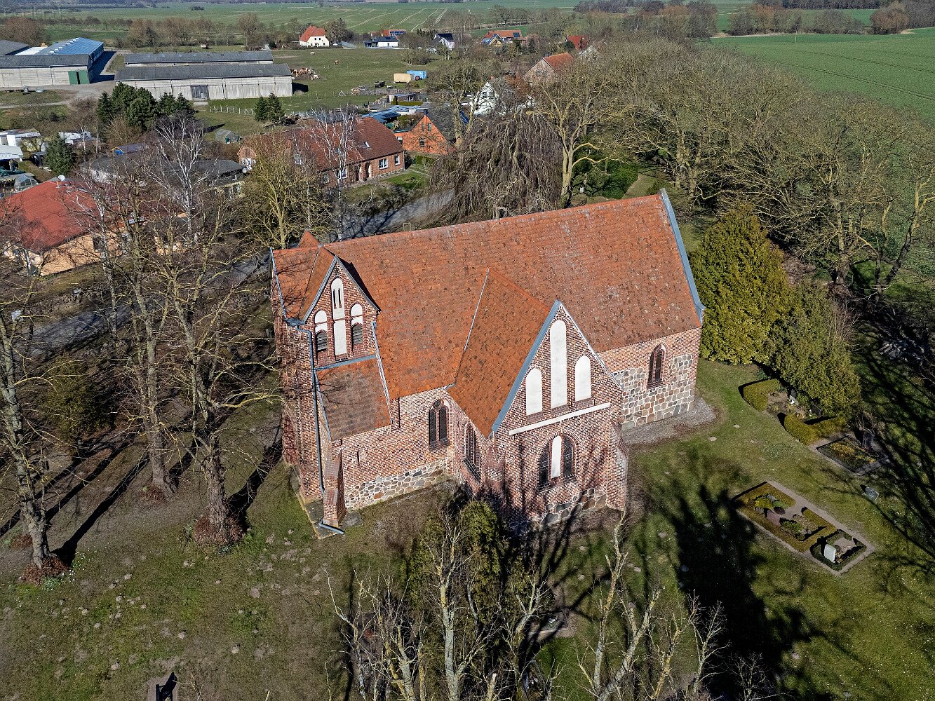 Drohnenaufnahmen der Feldsteinkirche in Russow