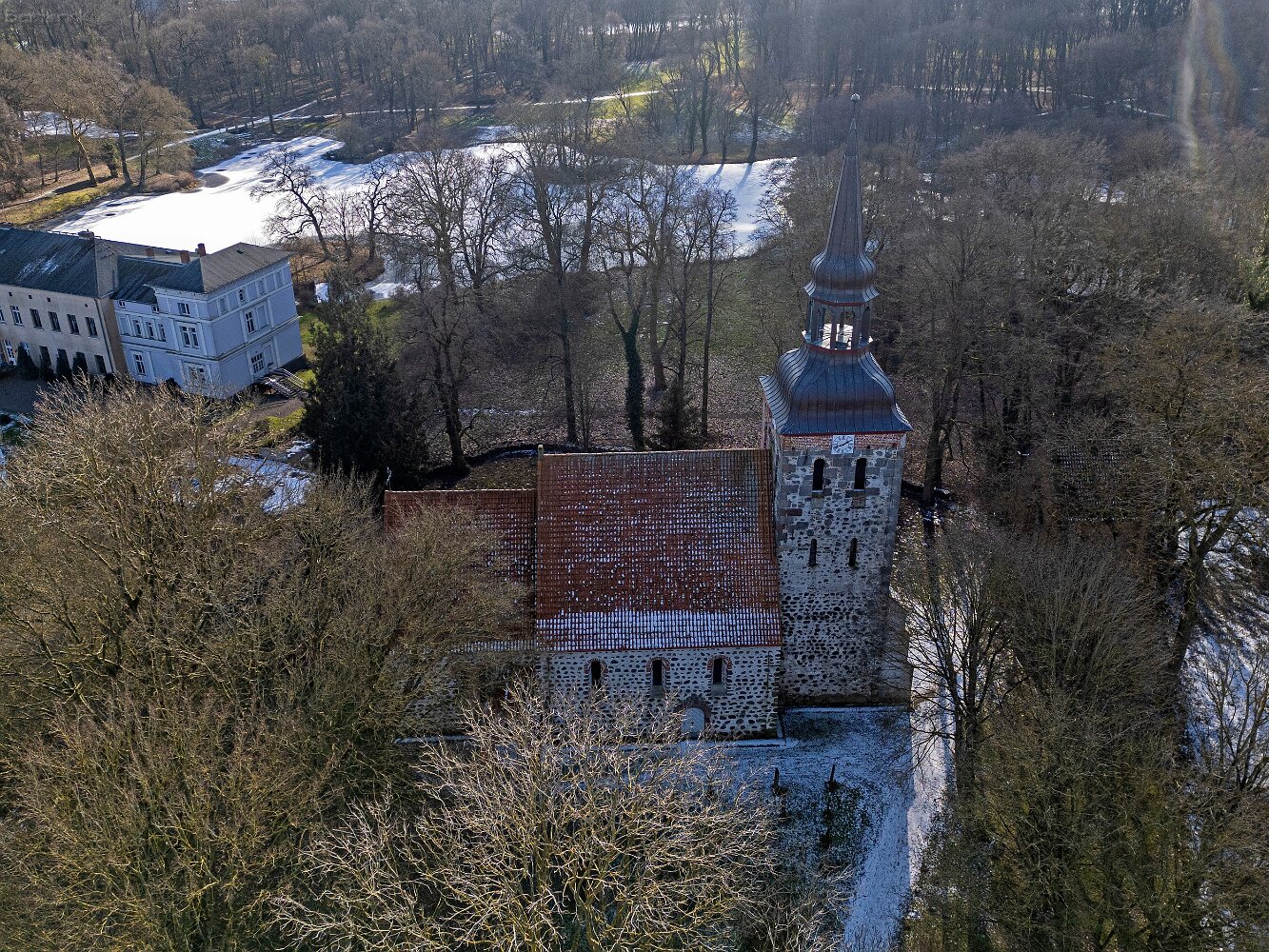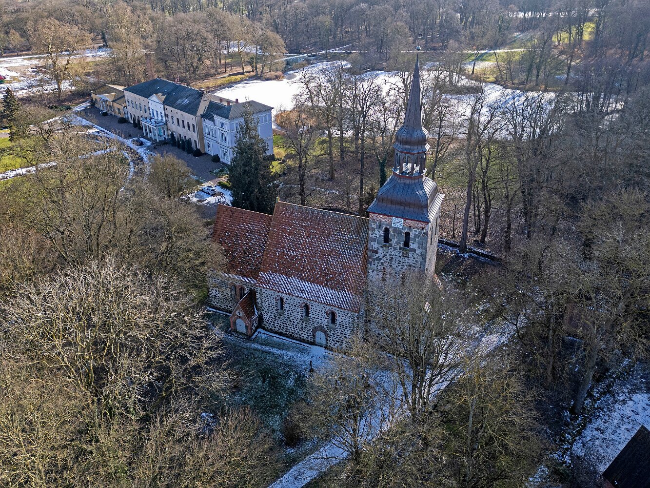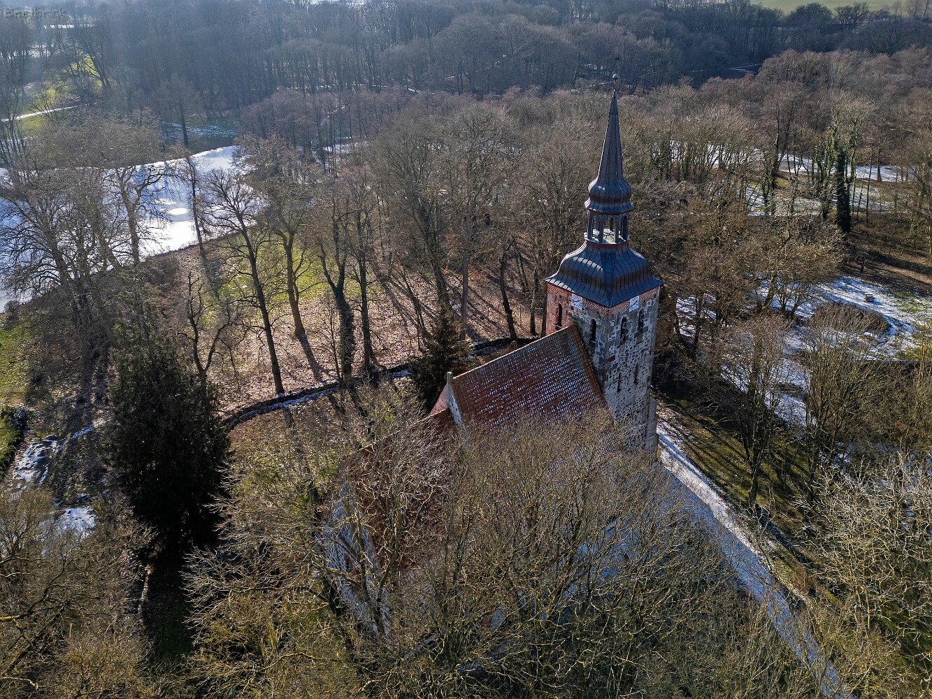Drohnenaufnahmen der Feldsteinkirche Semlow