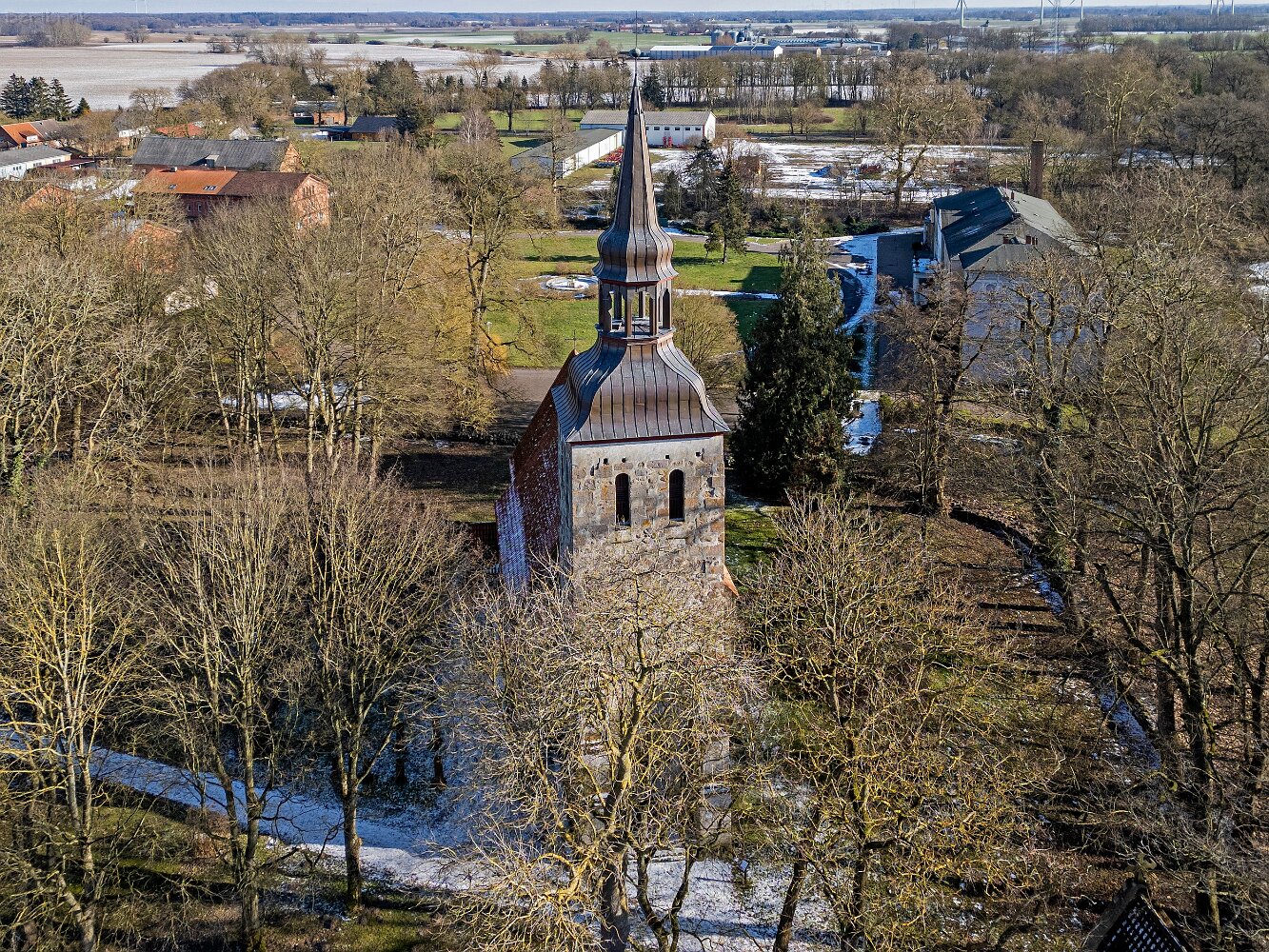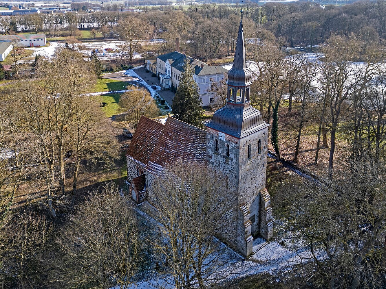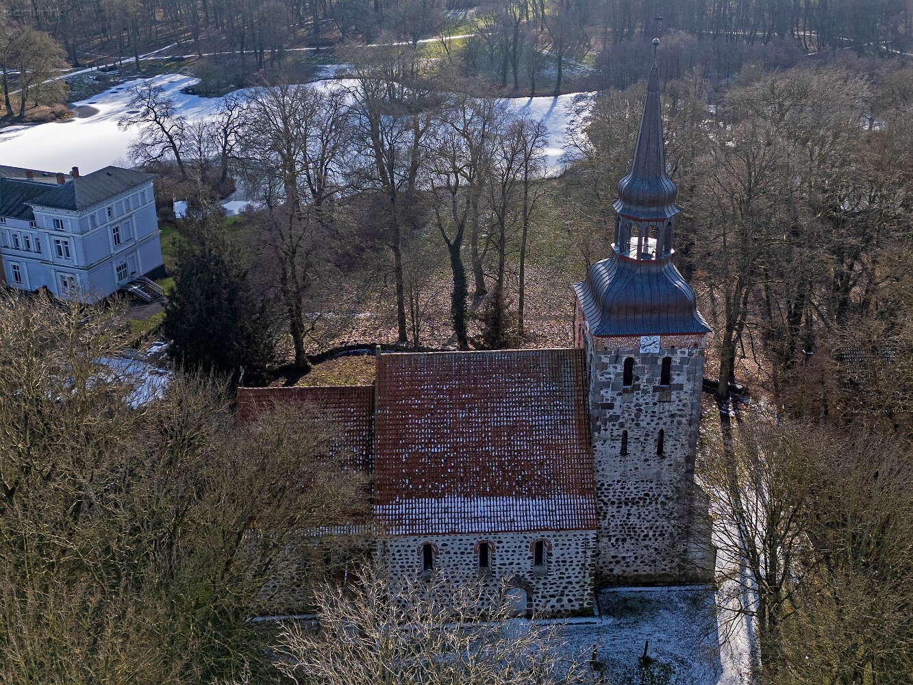 Drohnenaufnahmen der Feldsteinkirche Semlow