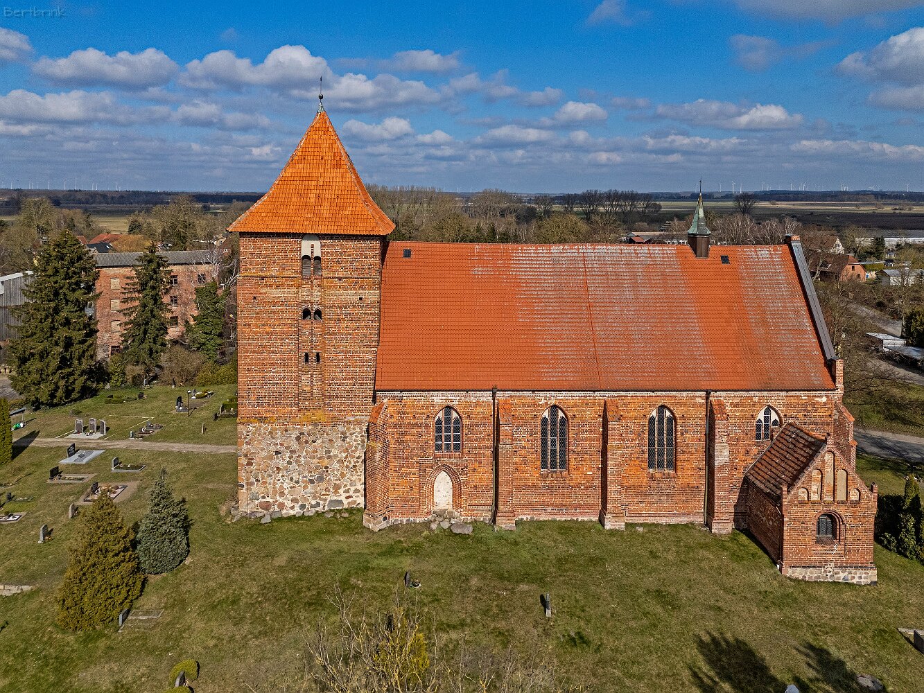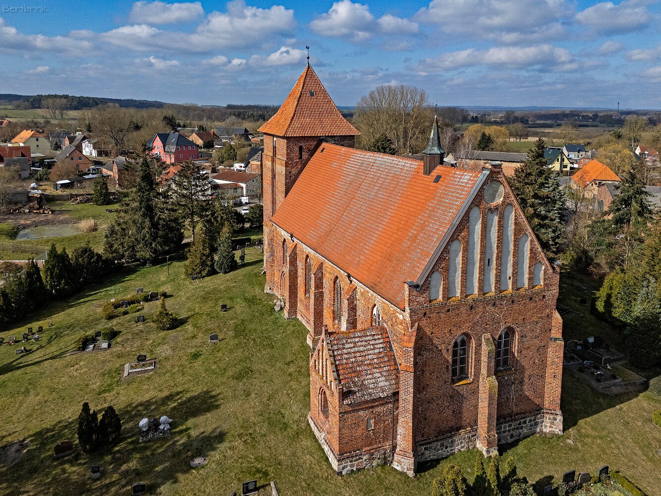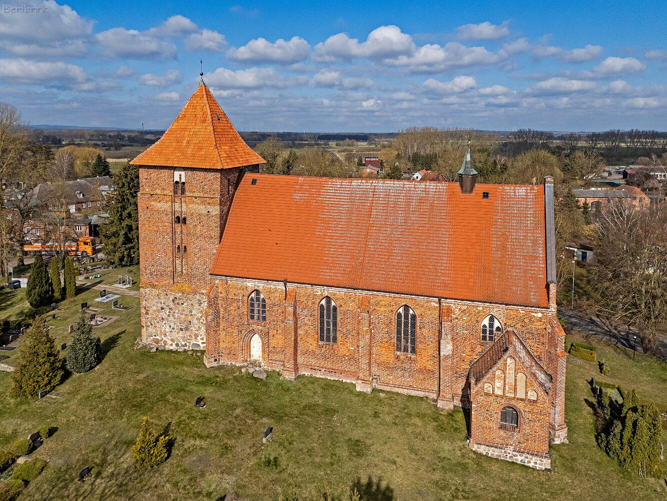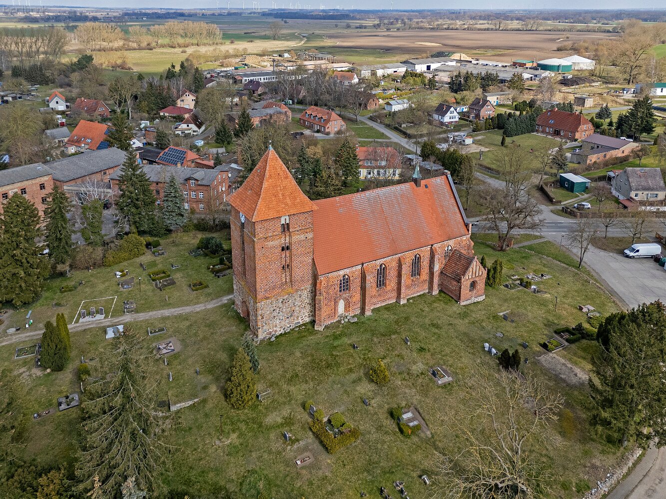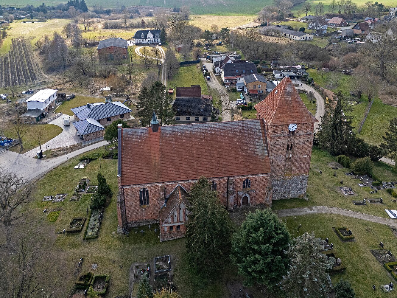 Drohnenaufnahmen der Feldsteinkirche in Tarnow