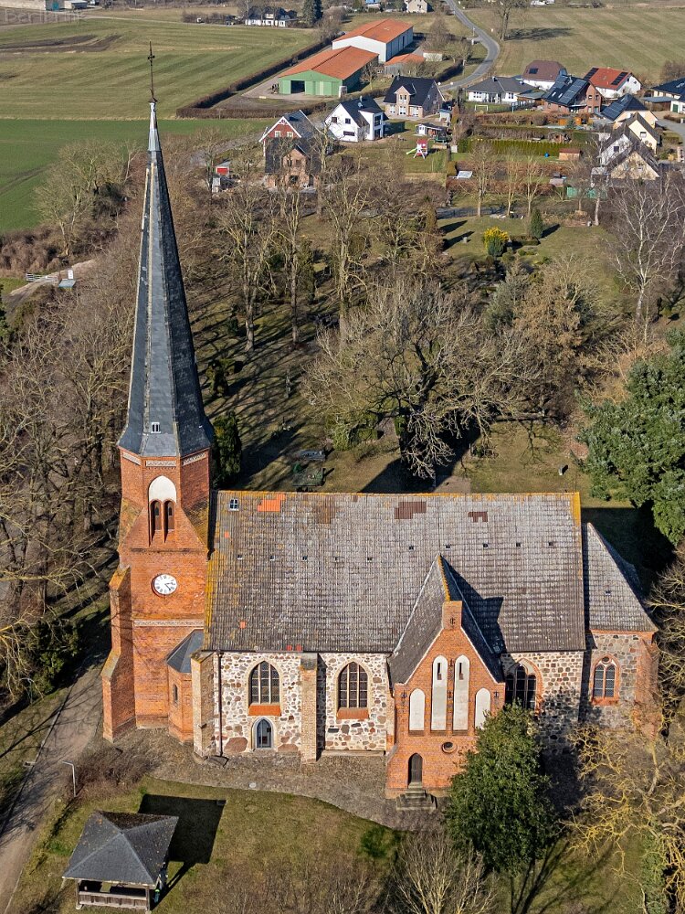 Drohnenaufnahmen der Feldsteinkirche in Volkenshagen