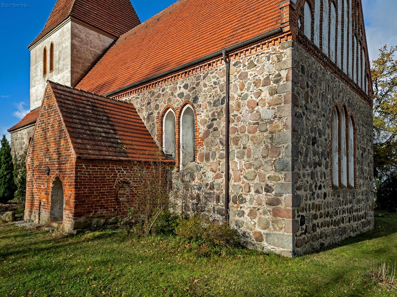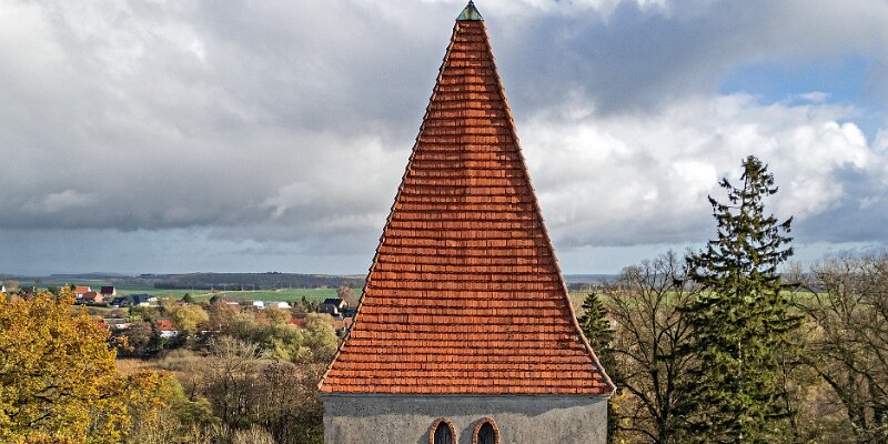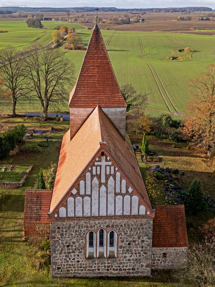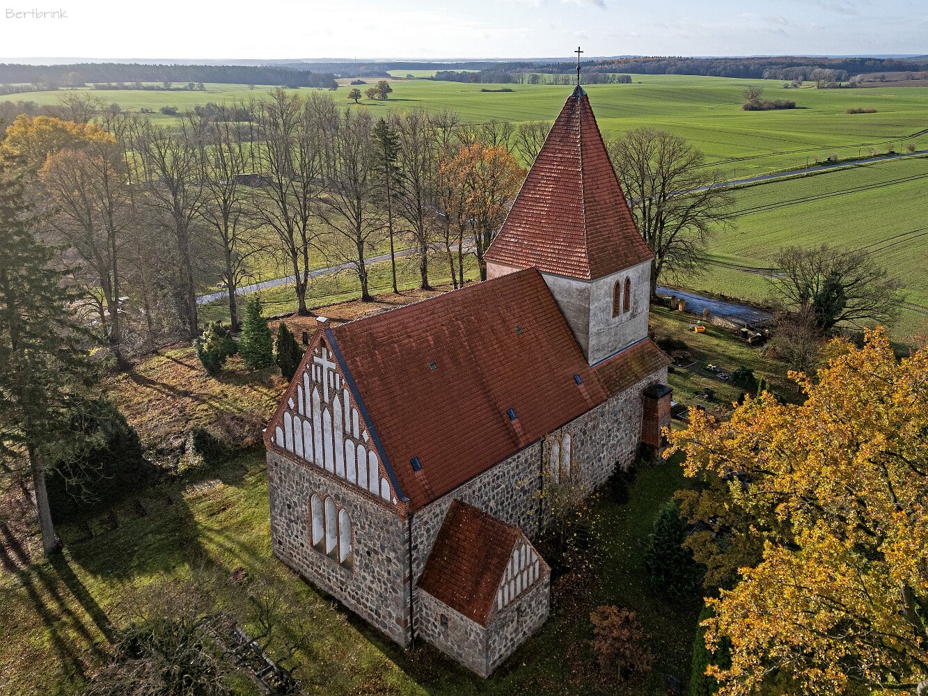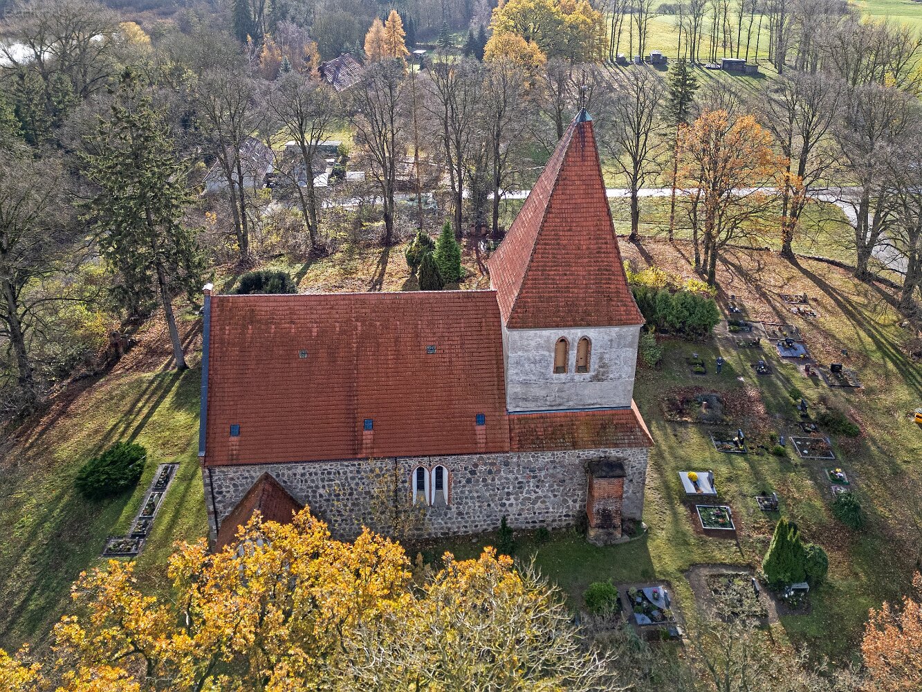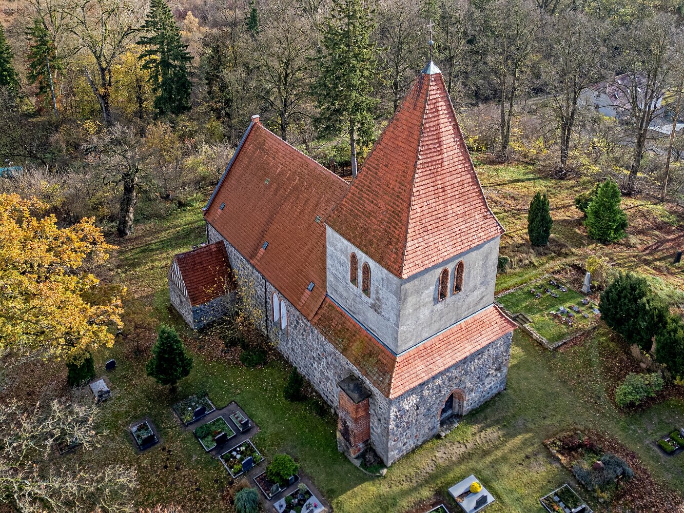 Die Feldsteinkirche in Zehne auf Drohnenfotos