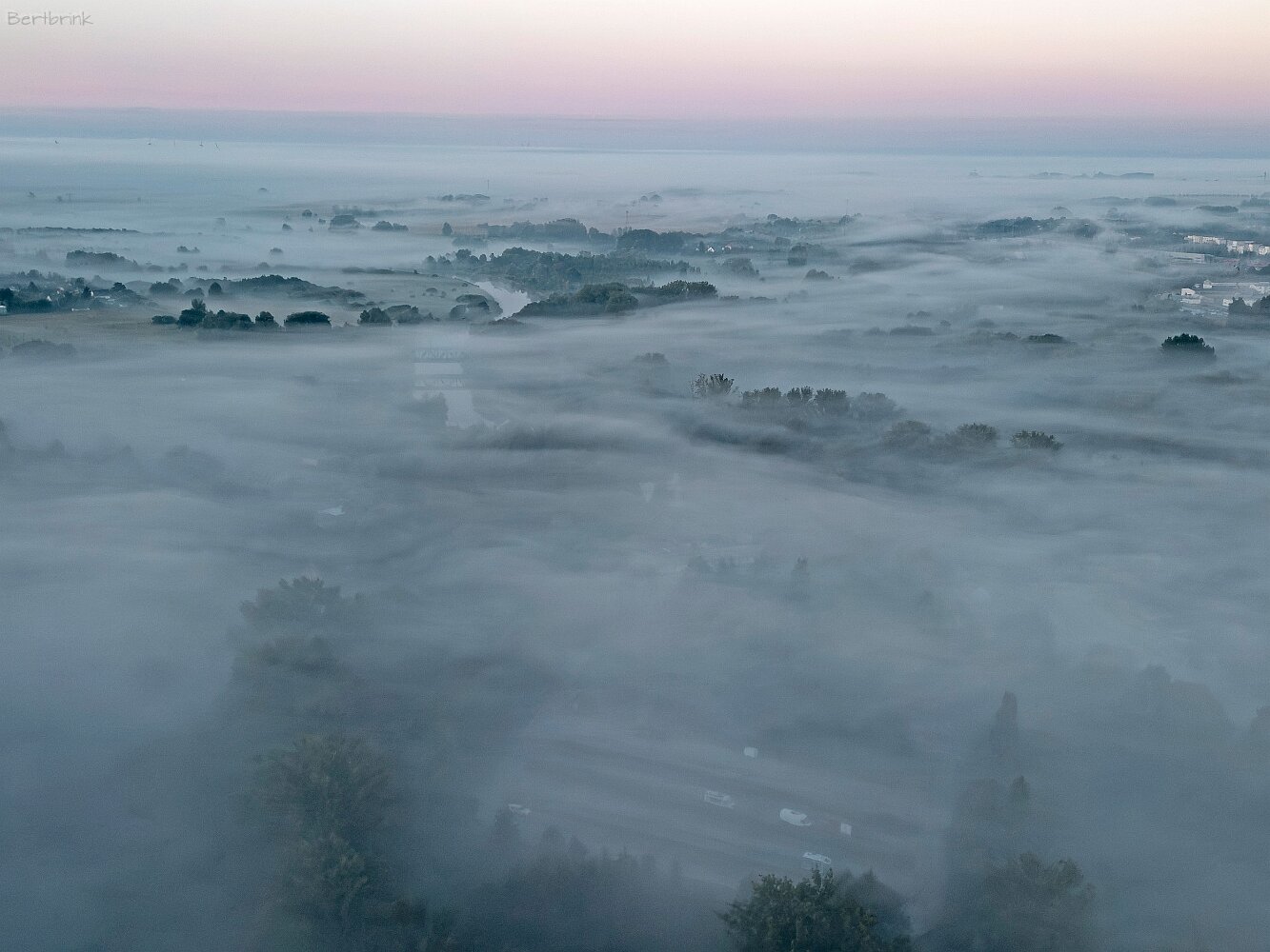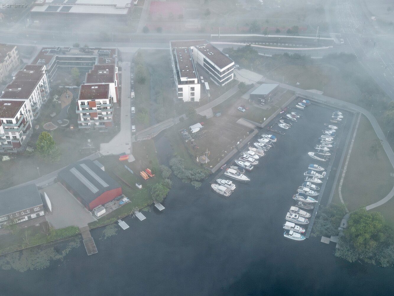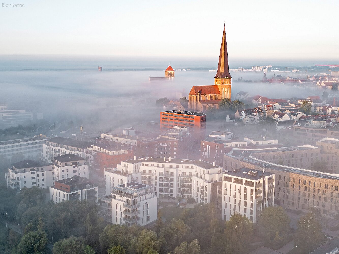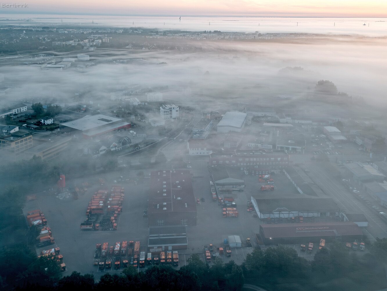 Sonnenaufgang im Nebel über der Warnow in Rostock