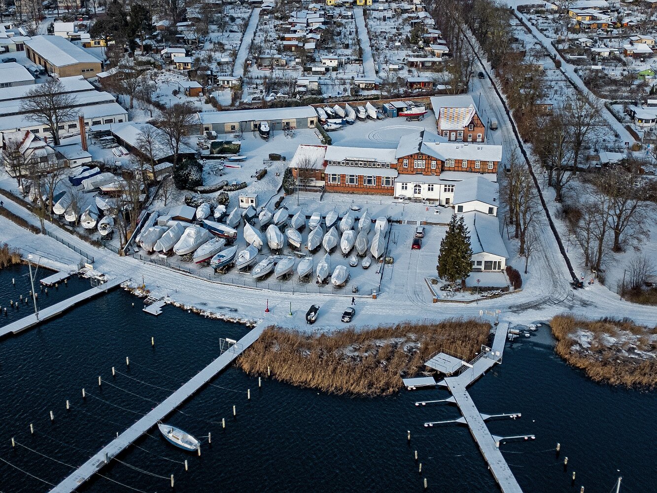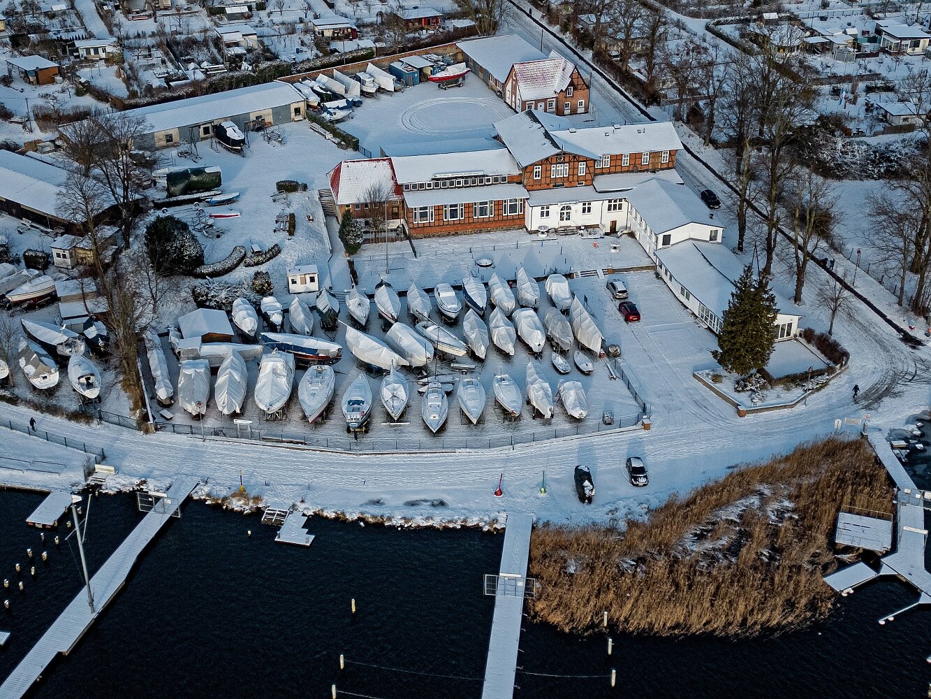 Drohnenaufnahmen des winterlichen Gehlsdorf