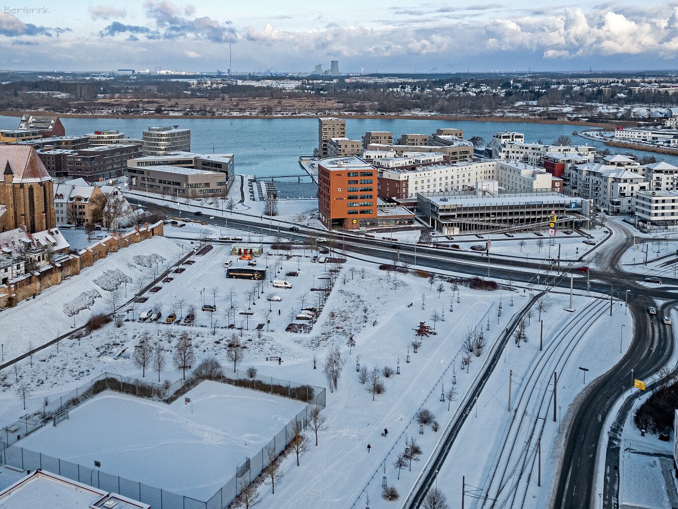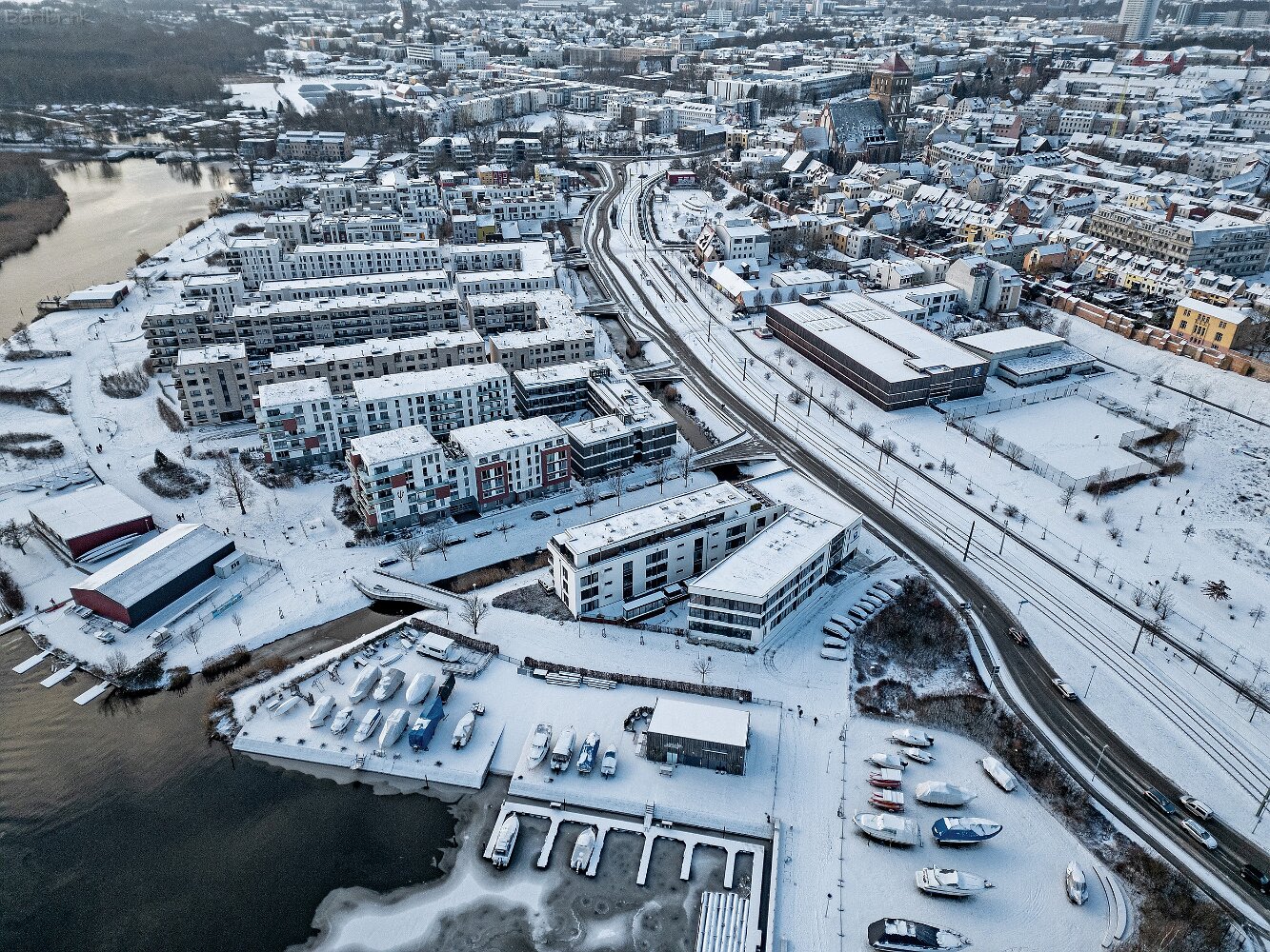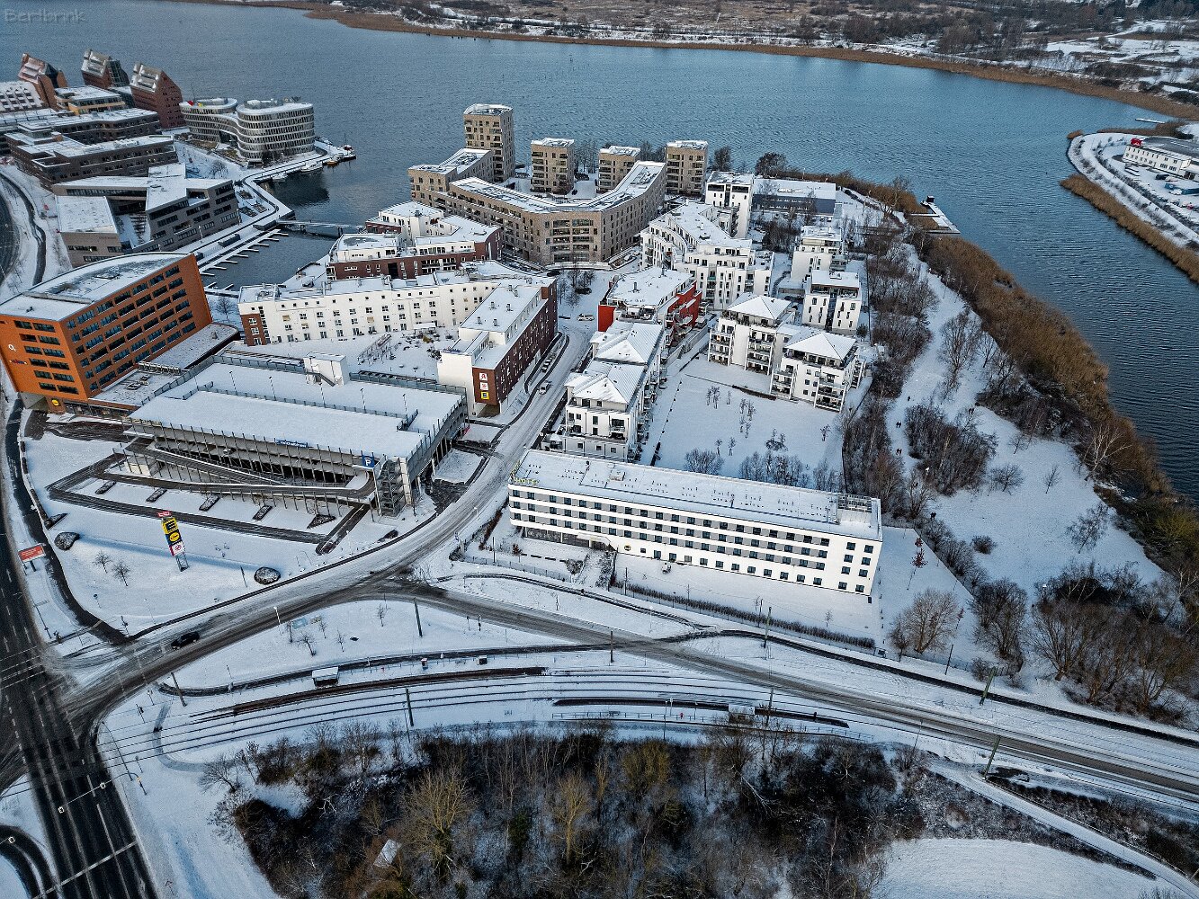 Drohnenaufnahmen der winterlichen Landschaft am Petriviertel
