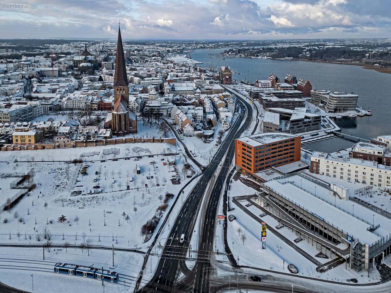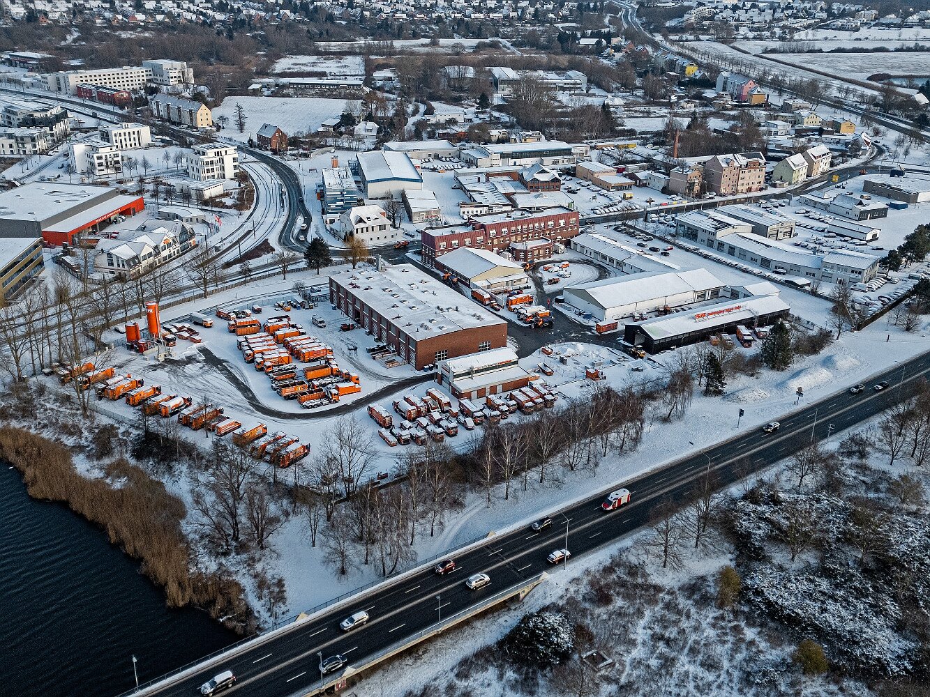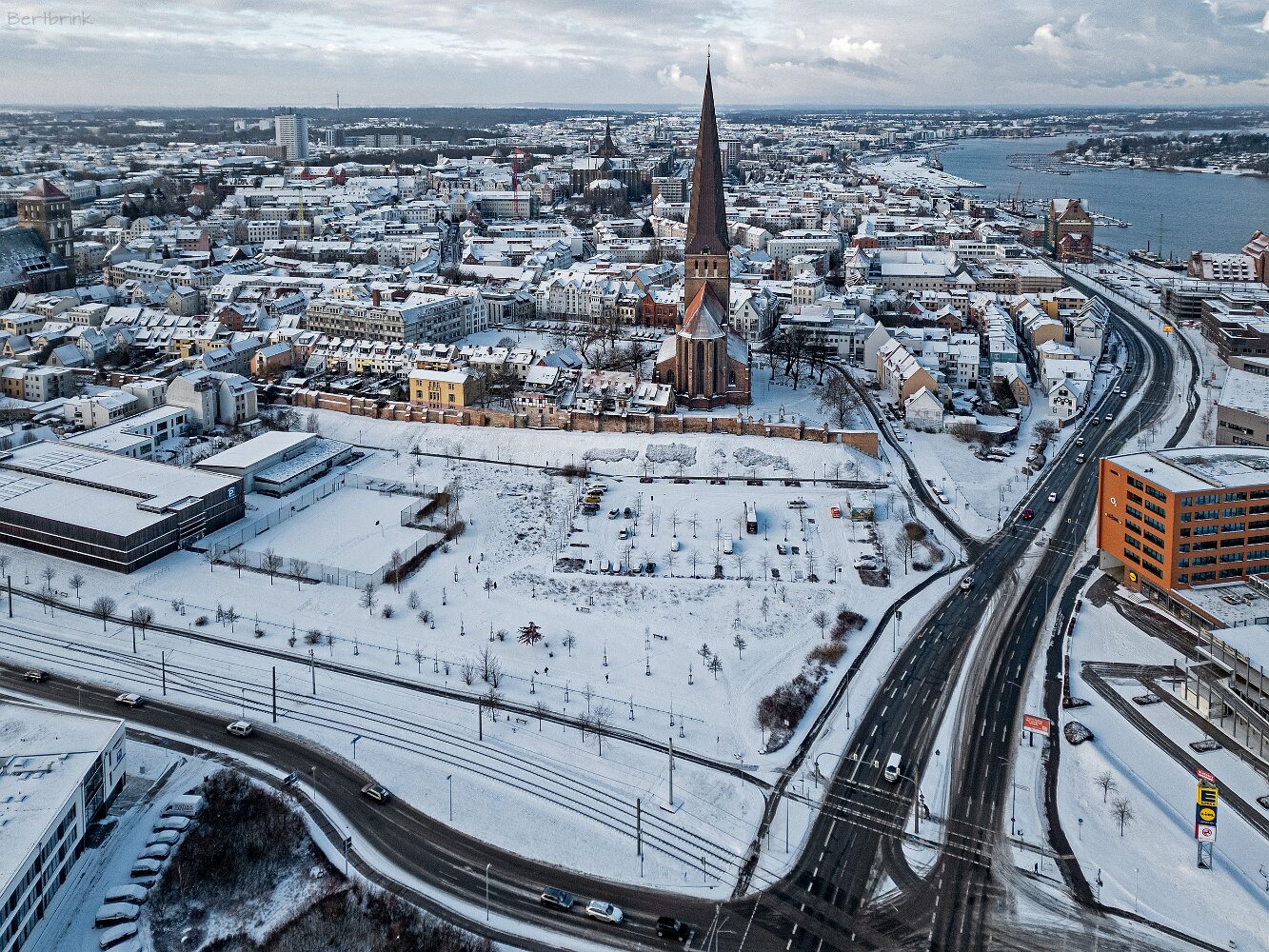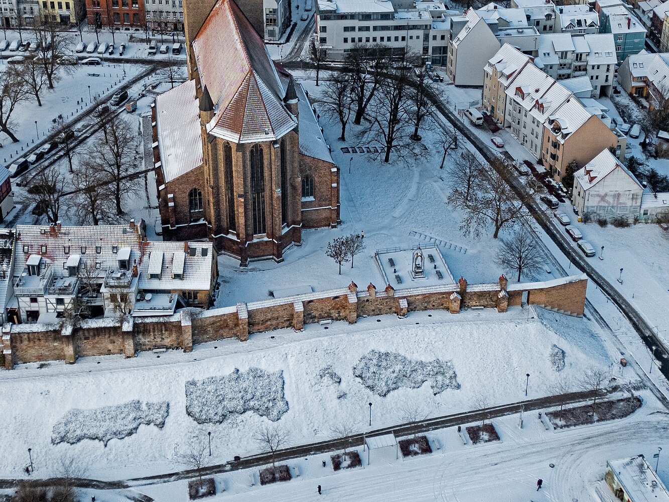 Drohnenaufnahmen der winterlichen Landschaft am Petriviertel