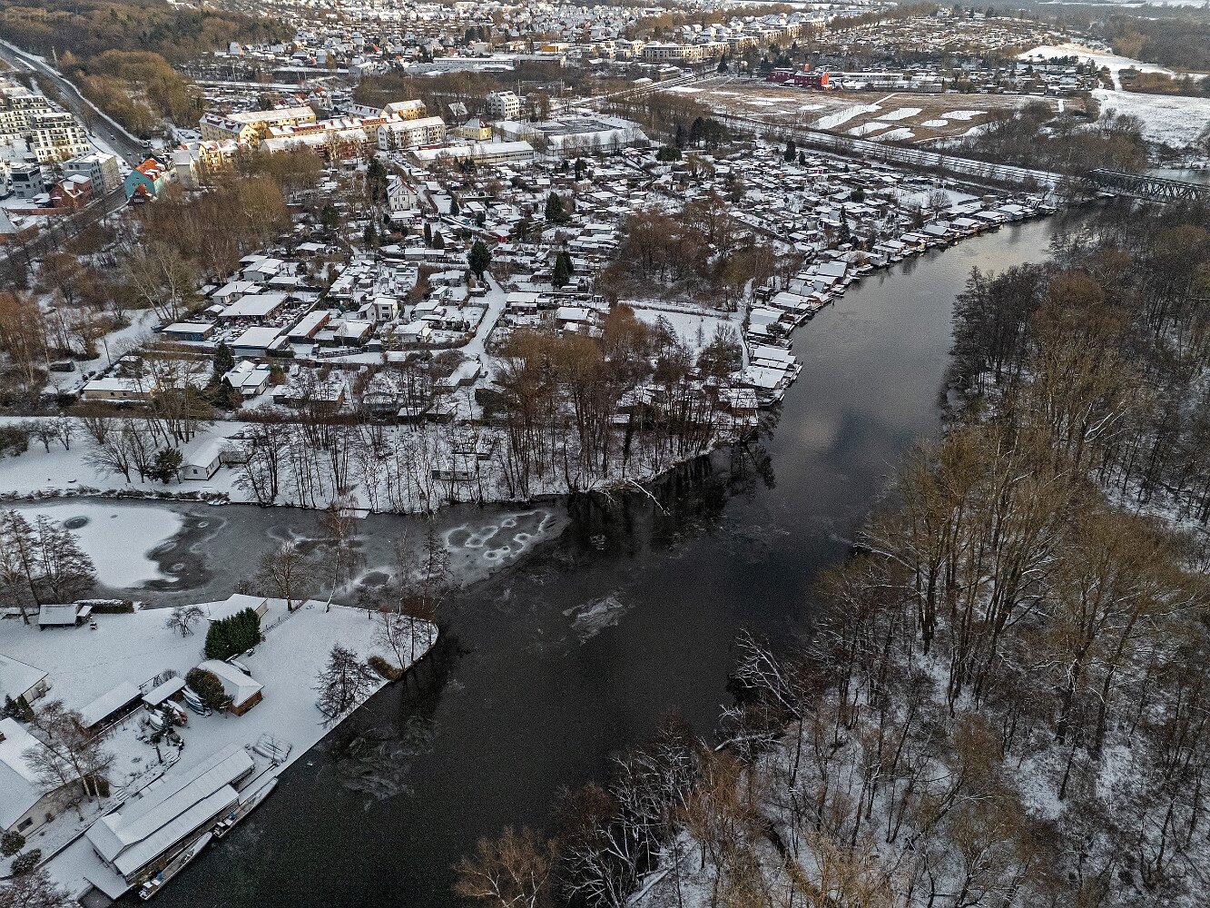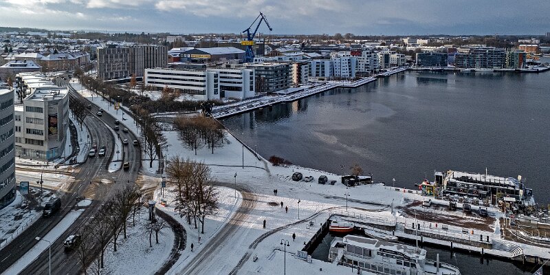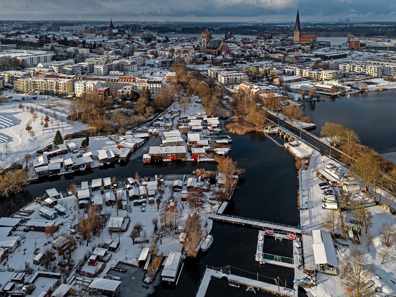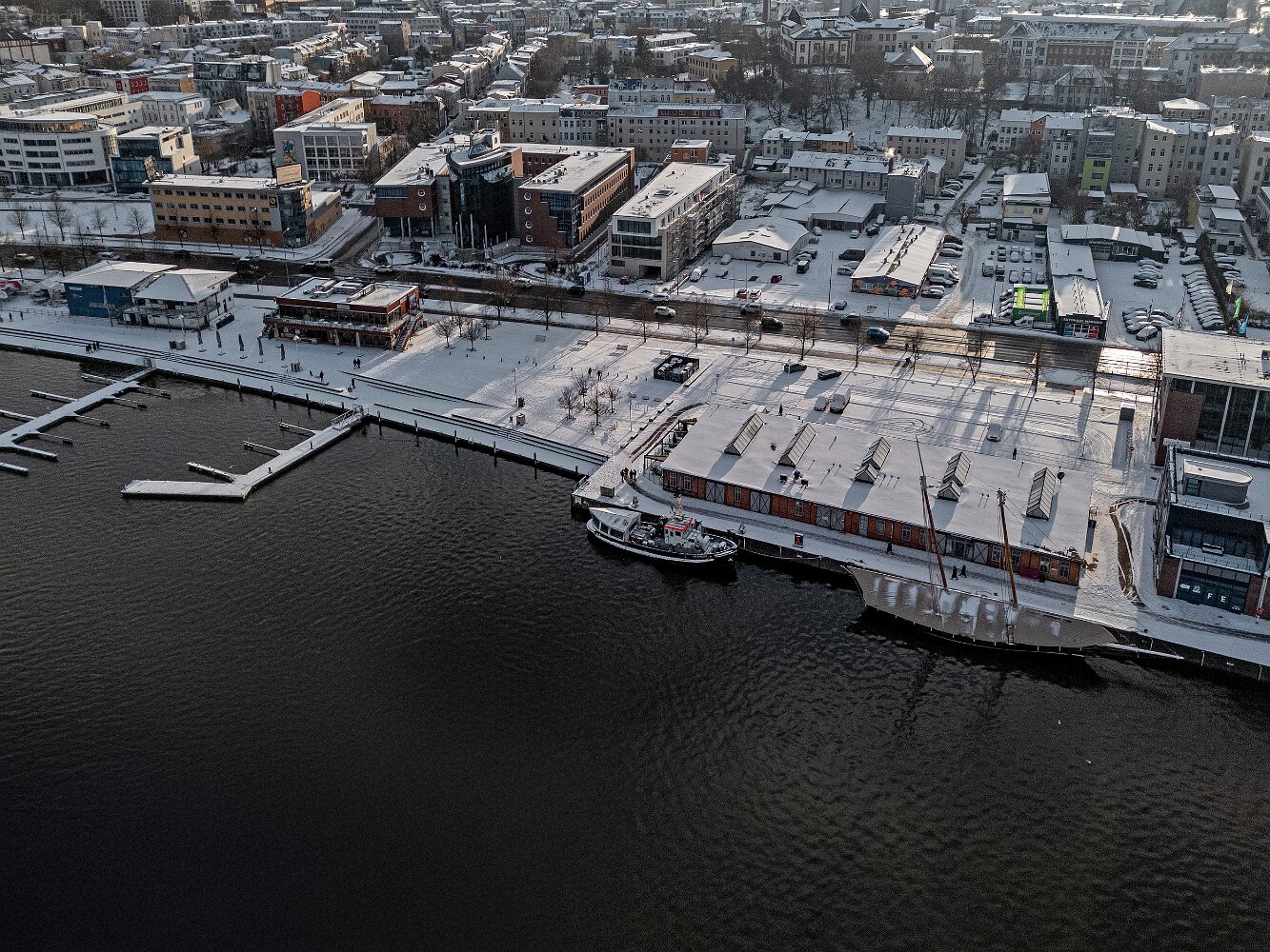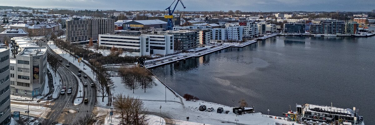 Drohnenaufnahmen von der Eisbildung auf der Ober- und Unterwarnow