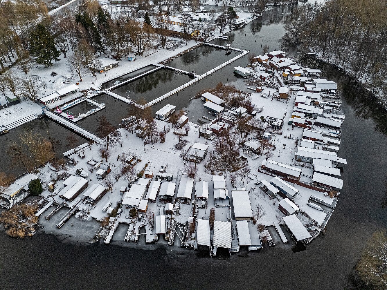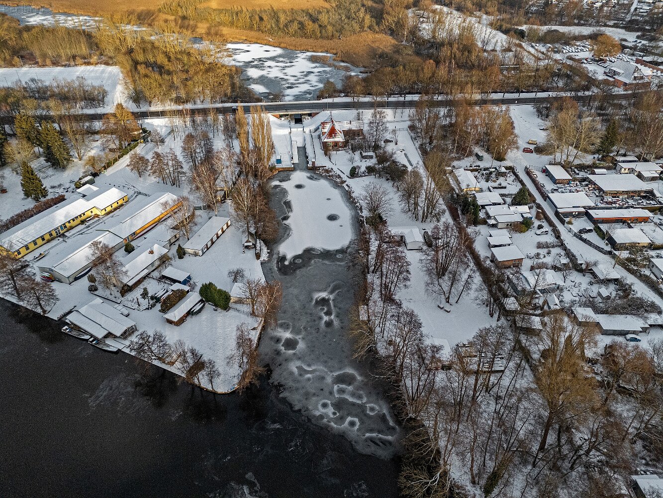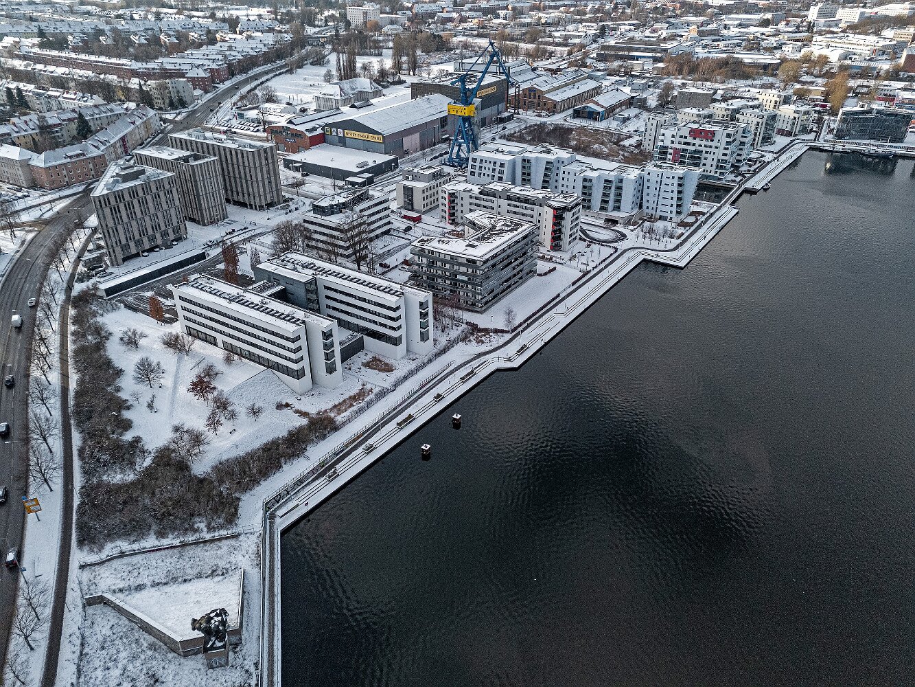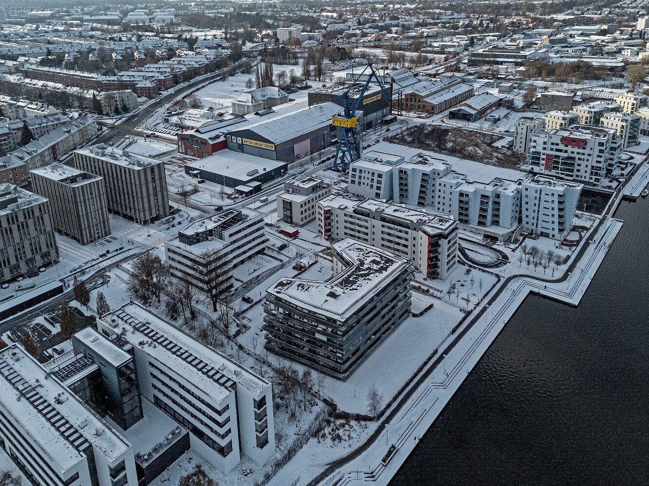 Drohnenaufnahmen von der Eisbildung auf der Ober- und Unterwarnow